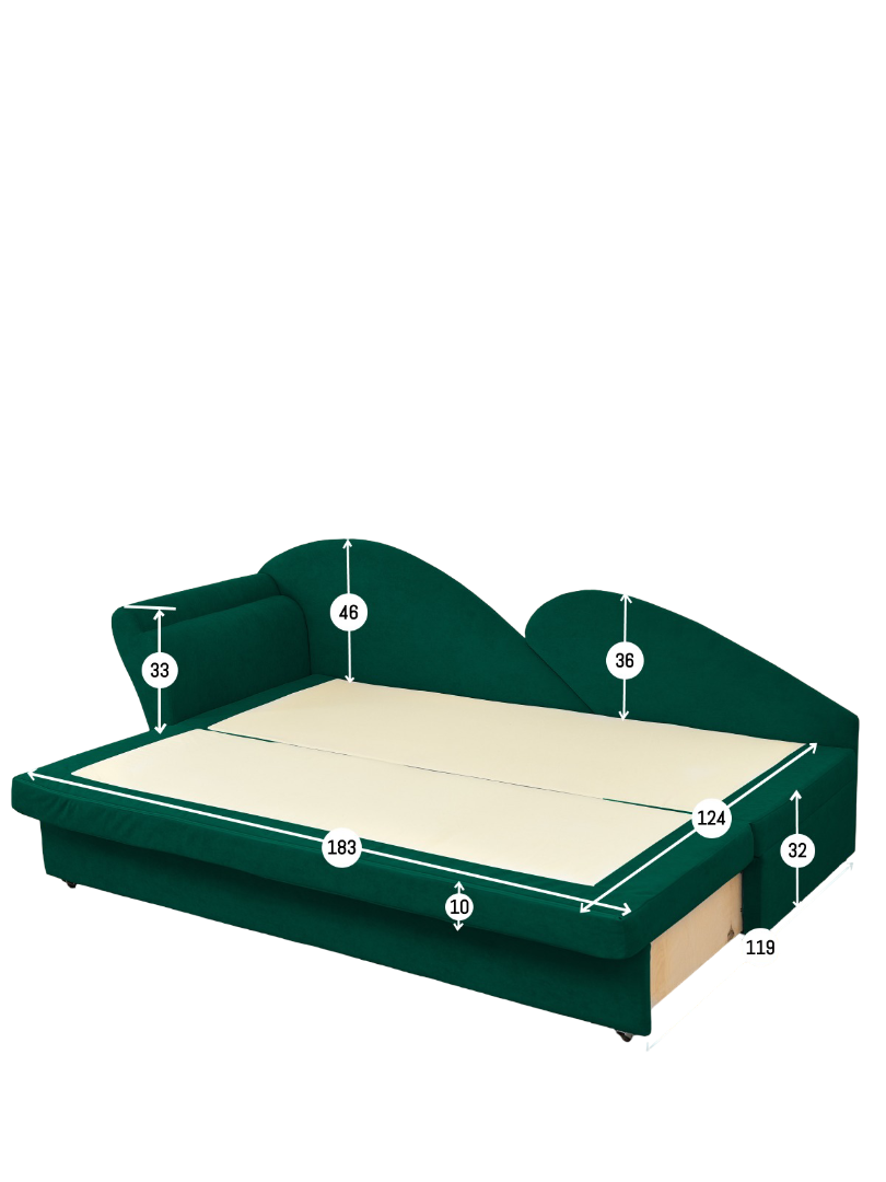 Угловой диван-кровать модель 212 от мебельной фабрики Brendoss — это удачное сочетание стиля ар-деко и функциональности. Его уникальный дизайн, напоминающий тахту, с твёрдой спинкой и мягким подлокотником привносит в интерьер утончённость и комфорт. Диван идеально впишется как в просторные гостиные, так и в компактные помещения, такие как кухня или детская комната. В сложенном виде его размеры составляют 209x66x78 см, а спальное место имеет параметры 124x183 см. Одна из половин спального места более жёсткая, что добавляет удобства для тех, кто предпочитает твёрдую поверхность. Механизм трансформации «еврософа» позволяет легко и быстро разложить диван, превращая его в полноценное спальное место. Под сиденьем расположен вместительный ящик для хранения белья с подсветкой, что делает его особенно удобным для использования в тёмное время суток. Габариты ящика — 172x60x23 см. Диван изготовлен на прочном каркасе из березовой фанеры и бруса, что обеспечивает его надёжность при максимальной нагрузке до 300 кг. Наполнитель из плотного ППУ толщиной 90, 40, 20 и 10 мм обеспечивает оптимальную поддержку и долговечность. Обивка выполнена из водоотталкивающего велюра, устойчивого к когтям мелких животных, гипоаллергенного и лёгкого в уходе. Материал дышащий, что создаёт комфорт в любое время года. Модель доступна с правой или левой ориентацией угла, позволяя выбрать наиболее удобный вариант для вашего пространства. В комплекте также идут две декоративные подушки, добавляющие дополнительный уют. Подлокотник и спинка требуют самостоятельной установки, что легко выполнимо с помощью прилагаемой инструкции. Диван 212 станет прекрасным выбором для любого помещения, сочетая комфорт, стиль и практичность в одном предмете мебели.