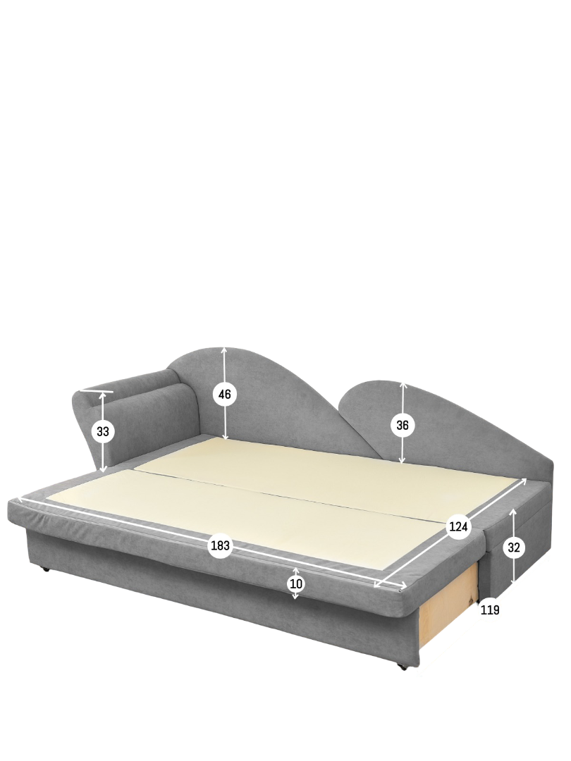 Угловой диван-кровать модель 212 от мебельной фабрики Brendoss — это удачное сочетание стиля ар-деко и функциональности. Его уникальный дизайн, напоминающий тахту, с твёрдой спинкой и мягким подлокотником привносит в интерьер утончённость и комфорт. Диван идеально впишется как в просторные гостиные, так и в компактные помещения, такие как кухня или детская комната. В сложенном виде его размеры составляют 209x66x78 см, а спальное место имеет параметры 124x183 см. Одна из половин спального места более жёсткая, что добавляет удобства для тех, кто предпочитает твёрдую поверхность. Механизм трансформации «еврософа» позволяет легко и быстро разложить диван, превращая его в полноценное спальное место. Под сиденьем расположен вместительный ящик для хранения белья с подсветкой, что делает его особенно удобным для использования в тёмное время суток. Габариты ящика — 172x60x23 см. Диван изготовлен на прочном каркасе из березовой фанеры и бруса, что обеспечивает его надёжность при максимальной нагрузке до 300 кг. Наполнитель из плотного ППУ толщиной 90, 40, 20 и 10 мм обеспечивает оптимальную поддержку и долговечность. Обивка выполнена из водоотталкивающего велюра, устойчивого к когтям мелких животных, гипоаллергенного и лёгкого в уходе. Материал дышащий, что создаёт комфорт в любое время года. Модель доступна с правой или левой ориентацией угла, позволяя выбрать наиболее удобный вариант для вашего пространства. В комплекте также идут две декоративные подушки, добавляющие дополнительный уют. Подлокотник и спинка требуют самостоятельной установки, что легко выполнимо с помощью прилагаемой инструкции. Диван 212 станет прекрасным выбором для любого помещения, сочетая комфорт, стиль и практичность в одном предмете мебели.