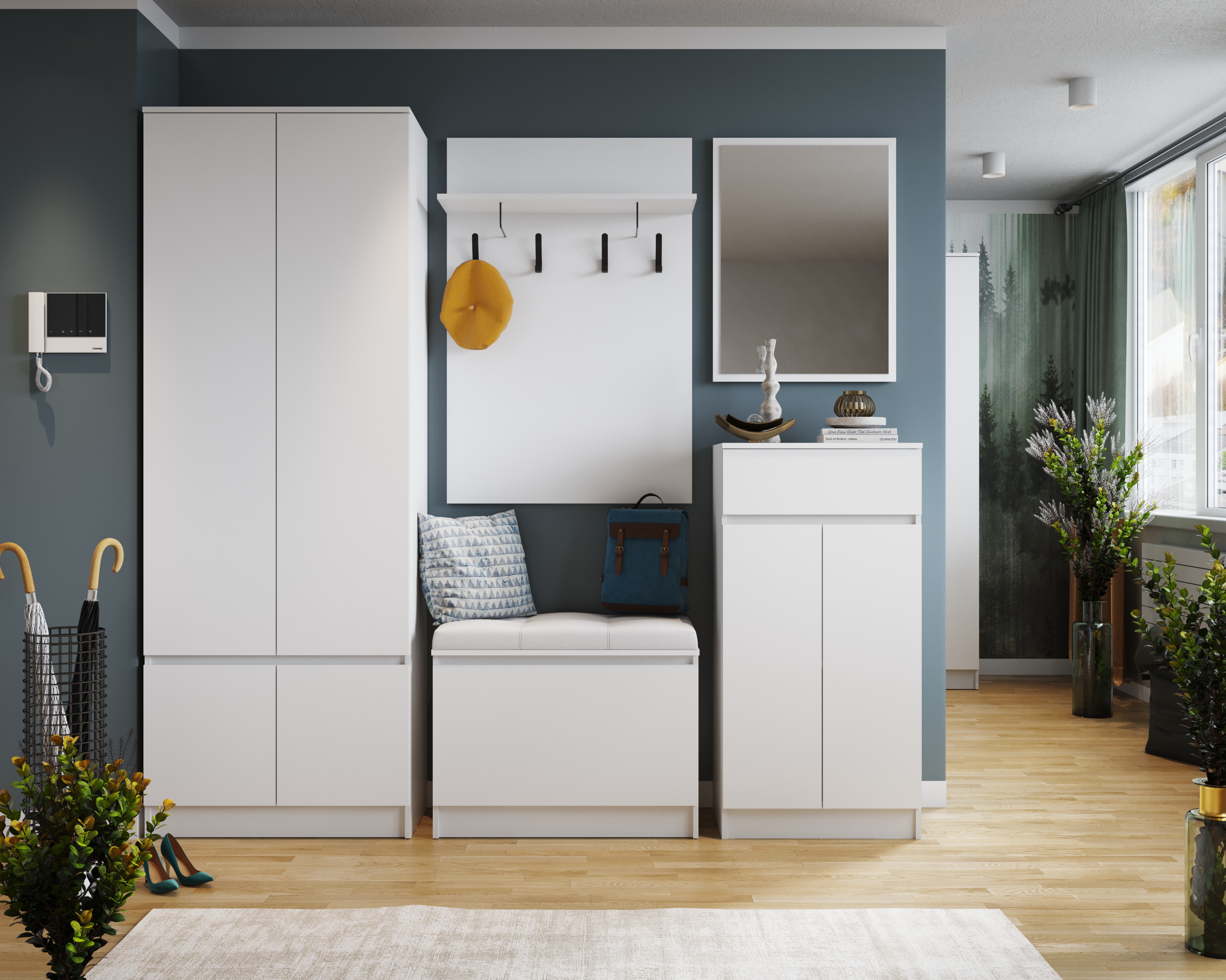 Вешалка может служить самостоятельным элементом для прихожей, а также использоваться в комплекте с другими элементами прихожей- тумбами, шкафами.