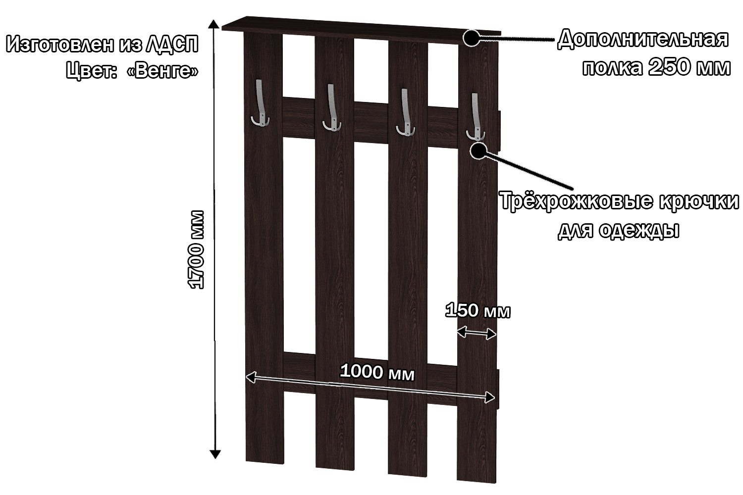 Крючки пластиковые – цвет черный.