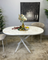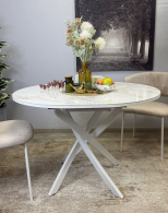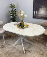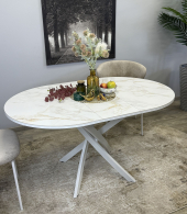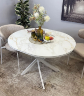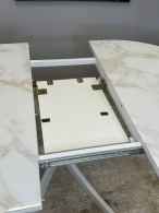 Стол сконструирован так, чтобы идеально подходить семье из трех-четырех человек. Керамическая столешница устойчива к воздействию различных домашних неприятностей. Благодаря керамической вставке есть возможность увеличивать размер стола при необходимости.