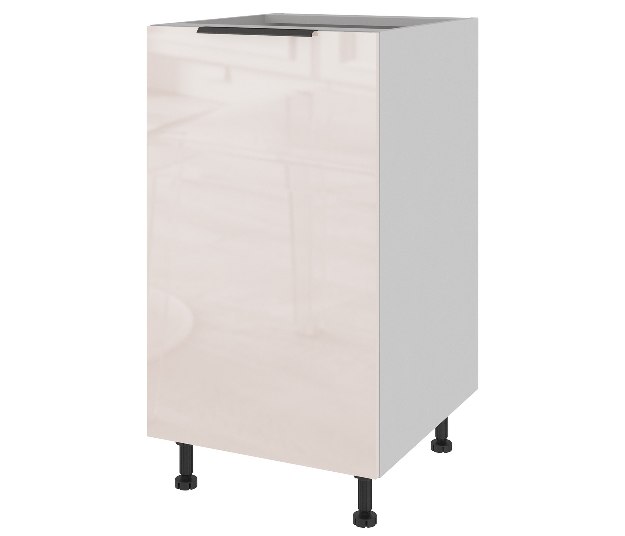 Высокоглянцевое покрытие (многослойная технология покрытия фасадов лаком). Опоры для тумб регулируемые высотой 100 мм. Цоколь белого цвета и Столешница приобретаются отдельно.
