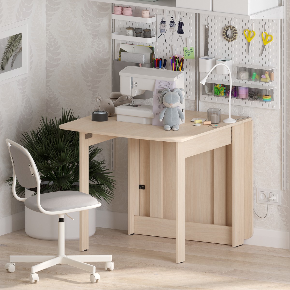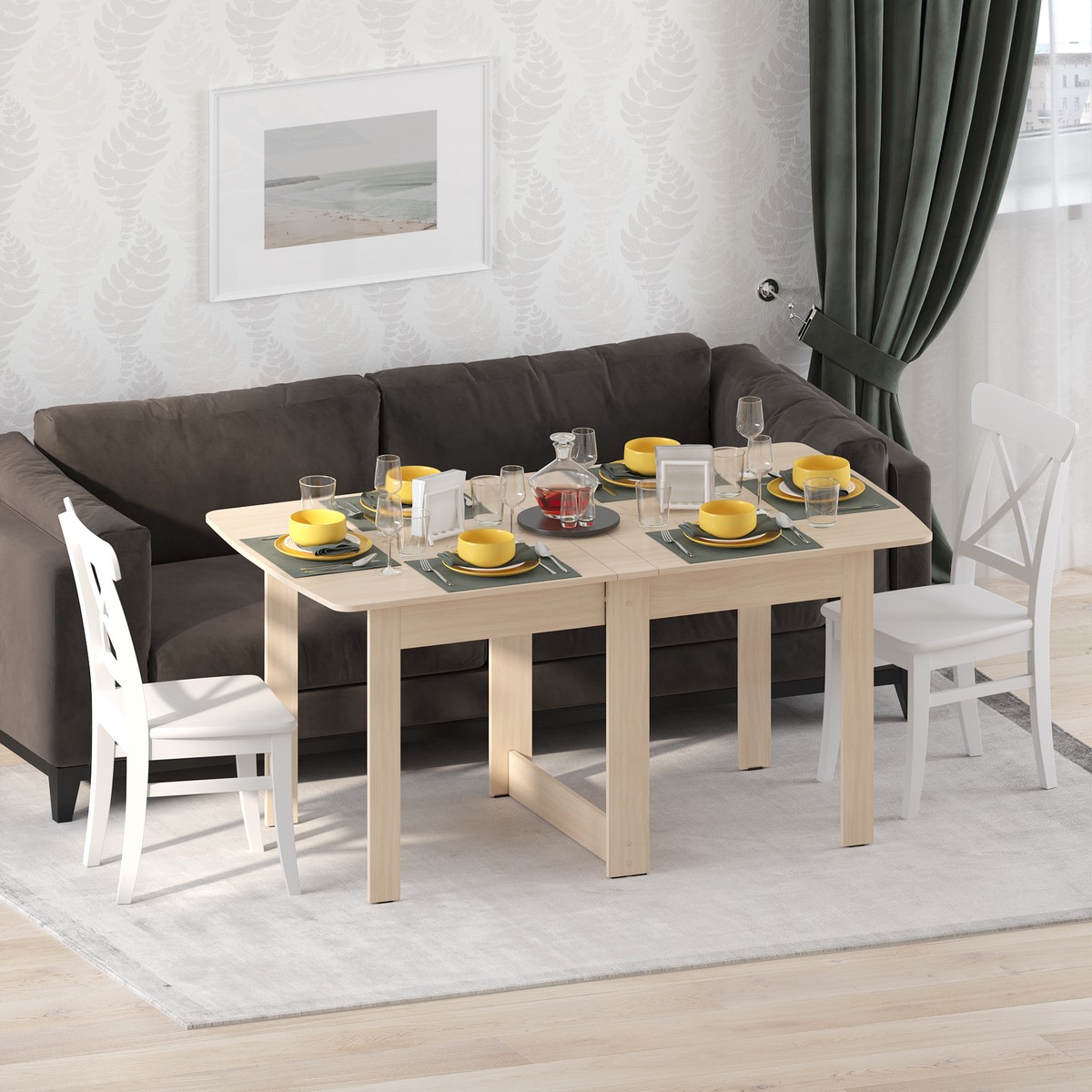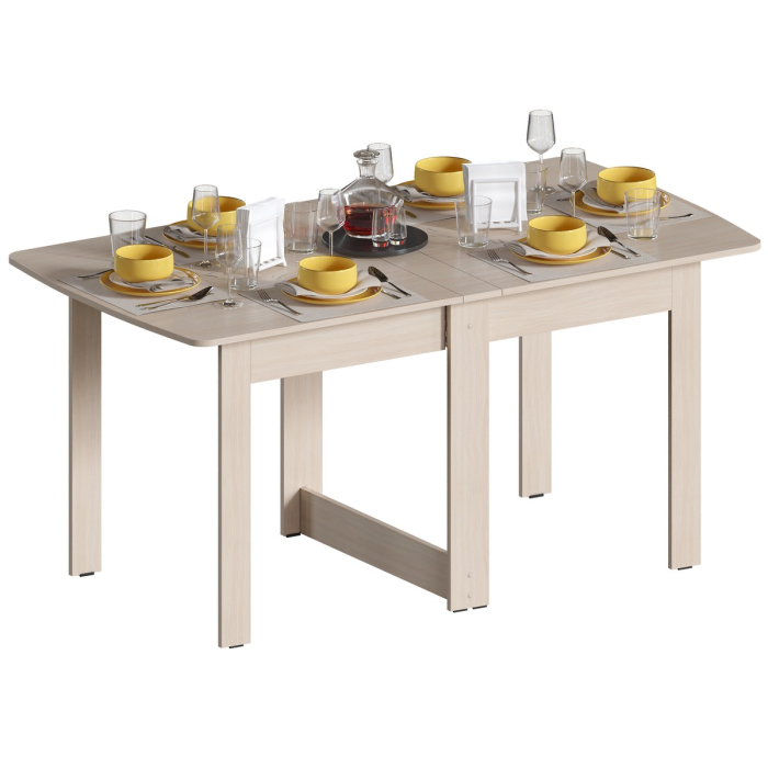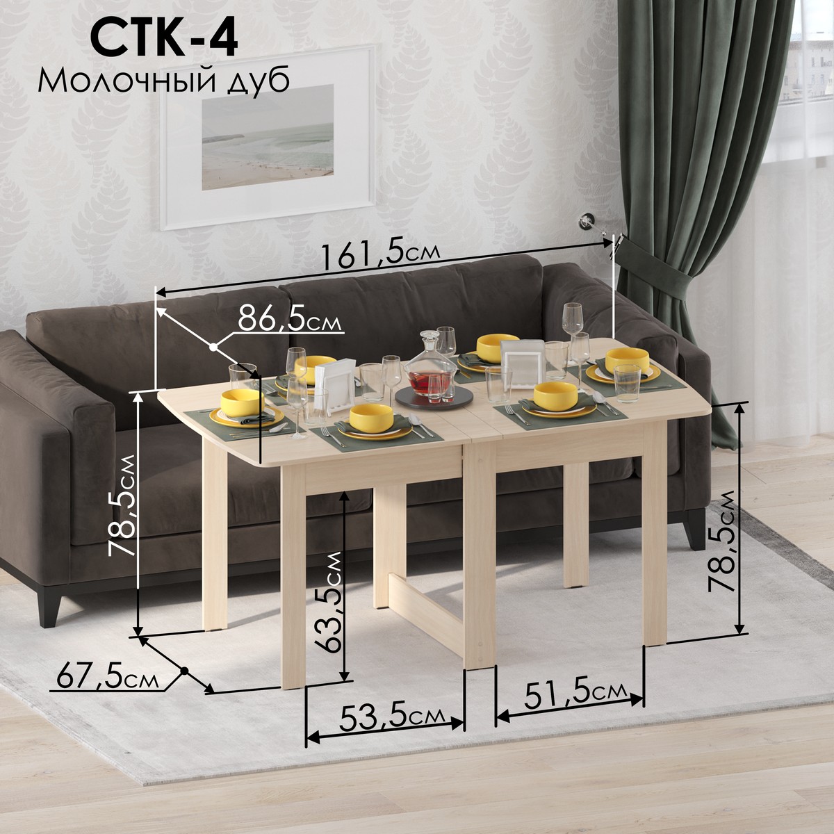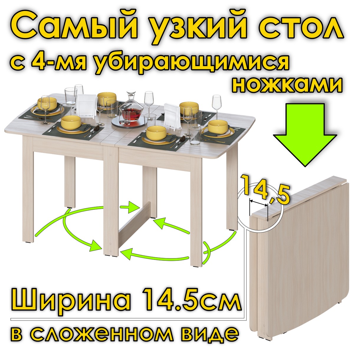 Эта модель стола будет оптимальным решением для тех, кому важна компактность в сложенном виде, но в то же время при раскладывании получается полноценный обеденный стол длиной 160 см. За таким столом могут разместиться 6-8 человек. А в сложенном виде стол-книжка СтК-4 занимает всего 14.5 см. Также стоит отметить скруглённые углы столешницы, что улучшает травмобезопасность стола. Цвет Дуб сонома/Белый. Изготовлен из ЛДСП 16 мм. Поставляется в разобранном виде.