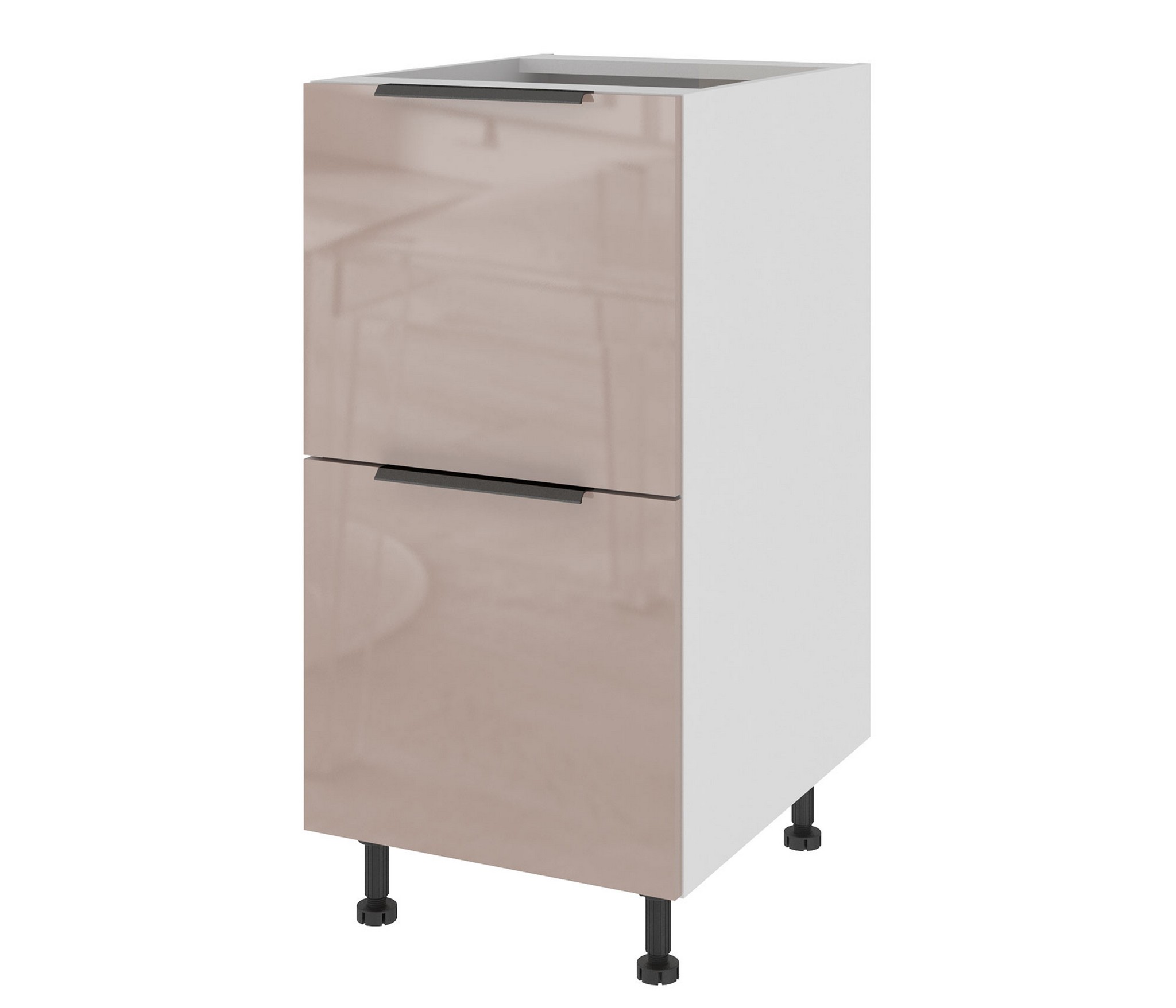 Высокоглянцевое покрытие (многослойная технология покрытия фасадов лаком). Опоры для тумб регулируемые высотой 100 мм. Цоколь белого цвета и Столешница приобретаются отдельно.