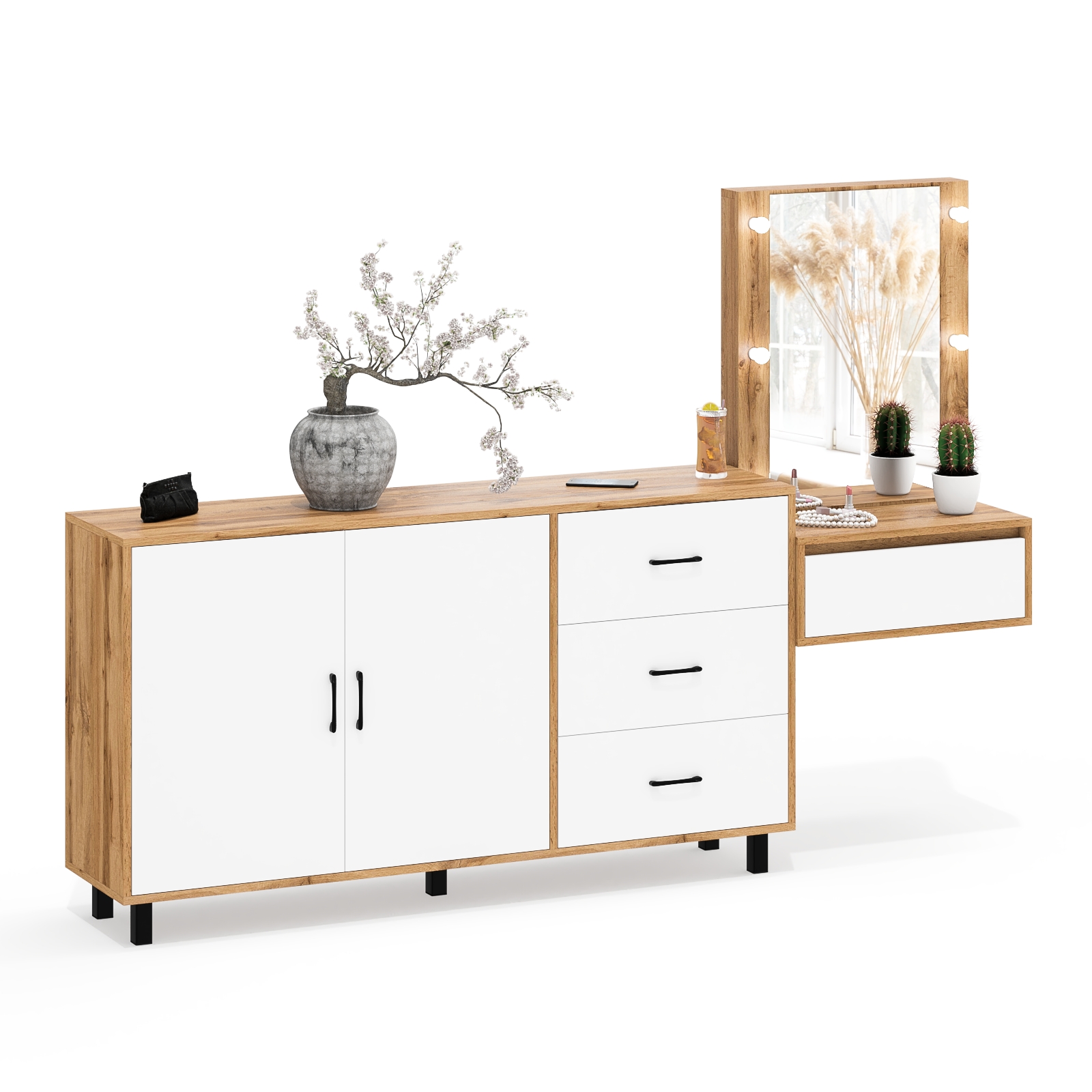 Косметический навесной столик с подсветкой и комод с ящиками и дверками 123-1604 – функциональное сочетание комода и навесного столика с зеркалом и подсветкой создаёт удобное место для ухода за собой и хранения аксессуаров.