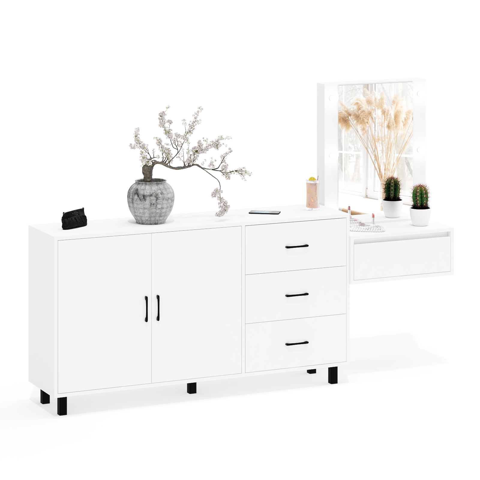 Косметический навесной столик с подсветкой и комод с ящиками и дверками 123-1604 – функциональное сочетание комода и навесного столика с зеркалом и подсветкой создаёт удобное место для ухода за собой и хранения аксессуаров.