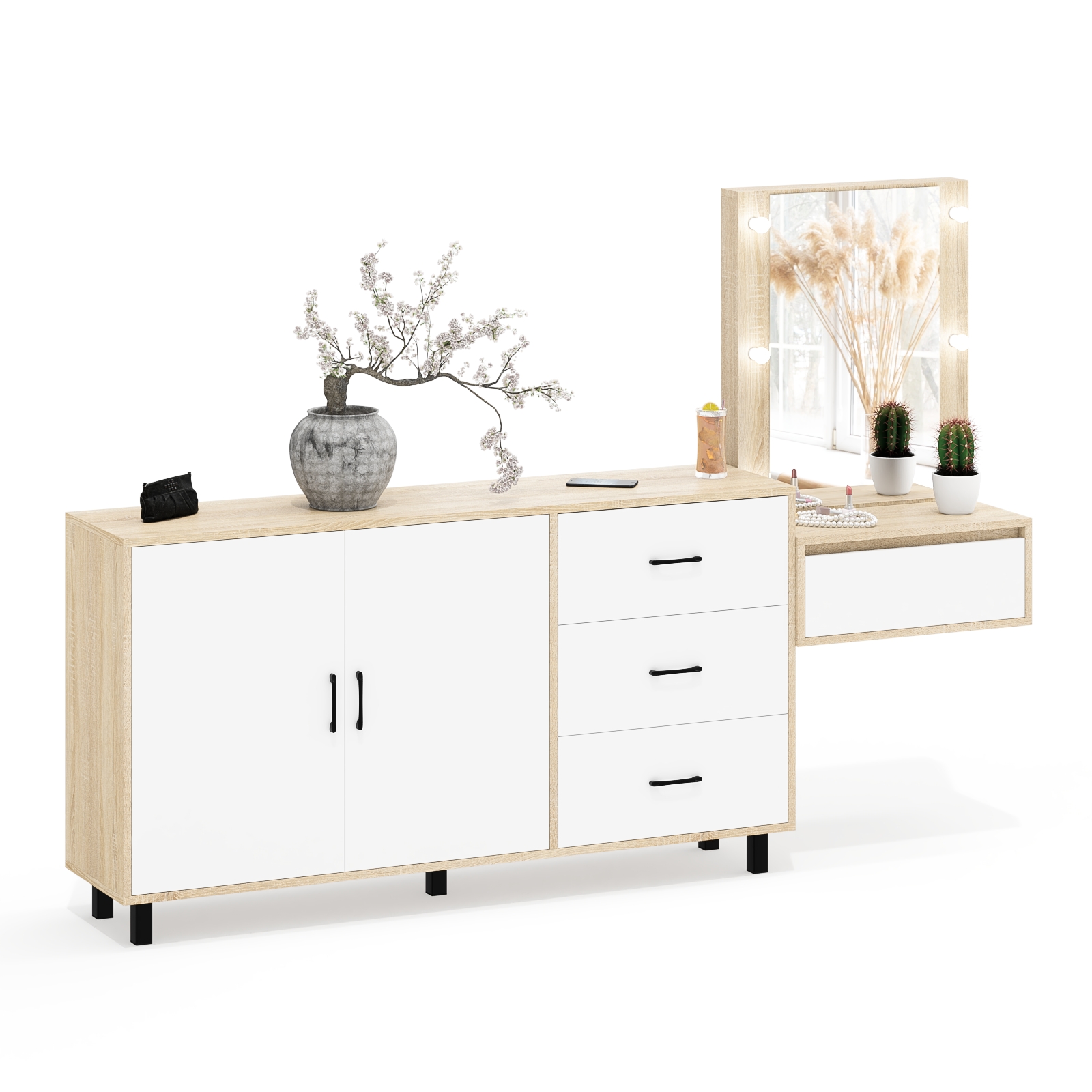 Косметический навесной столик с подсветкой и комод с ящиками и дверками 123-1604 – функциональное сочетание комода и навесного столика с зеркалом и подсветкой создаёт удобное место для ухода за собой и хранения аксессуаров.
