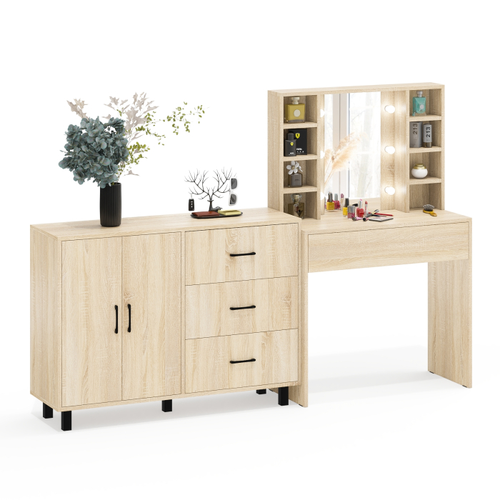 Туалетный столик с подсветкой 115 и тумба-комод 123-1204 — универсальный комплект для стильной спальни с удобной подсветкой и местом для хранения.