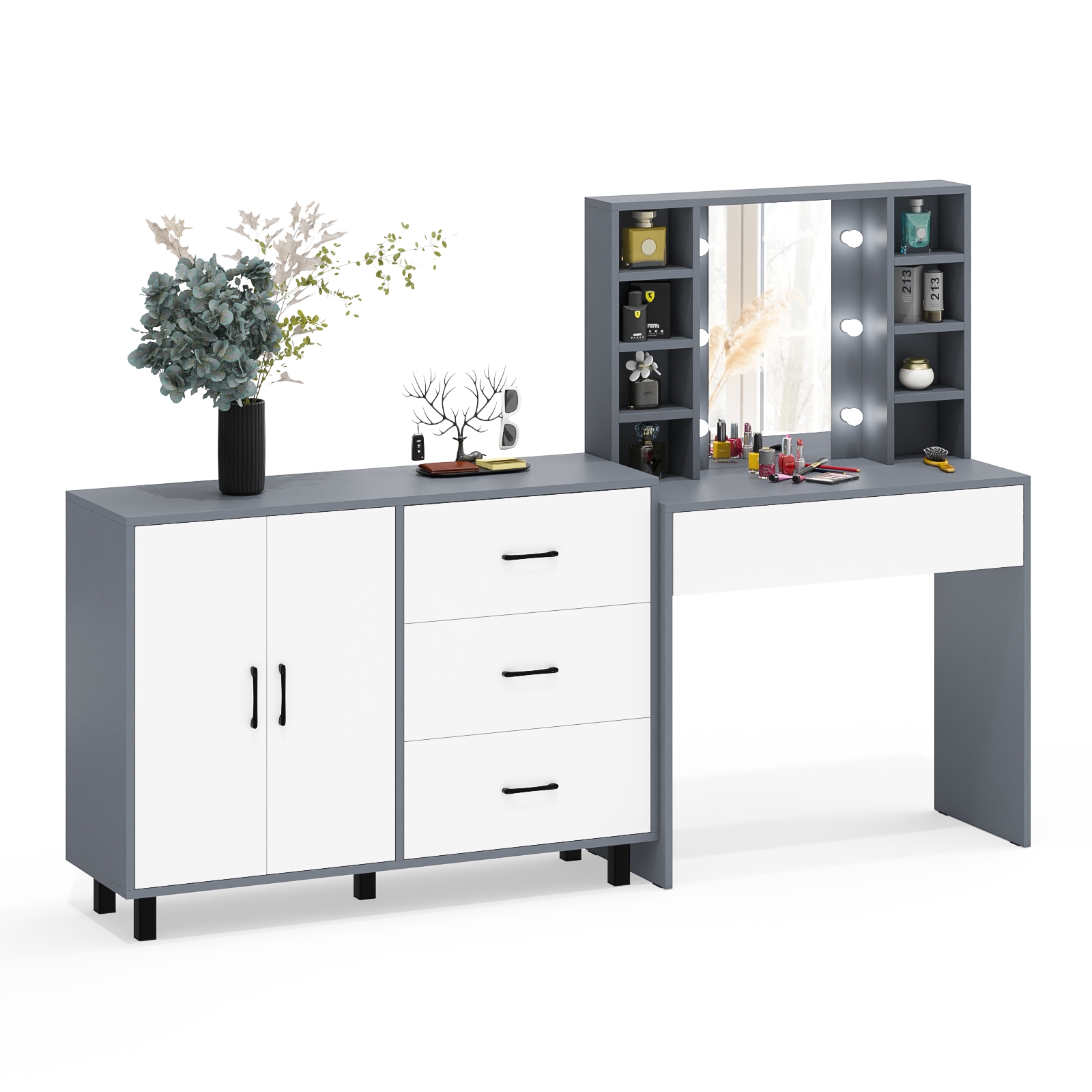 Туалетный столик с подсветкой 115 и тумба-комод 123-1204 (Графит/Белый) Код I0000448090