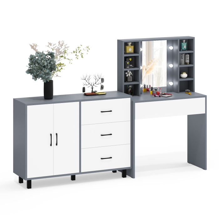 Отзывы о Столплит Туалетный столик с подсветкой 115 и тумба-комод 123-1204 Графит/Белый