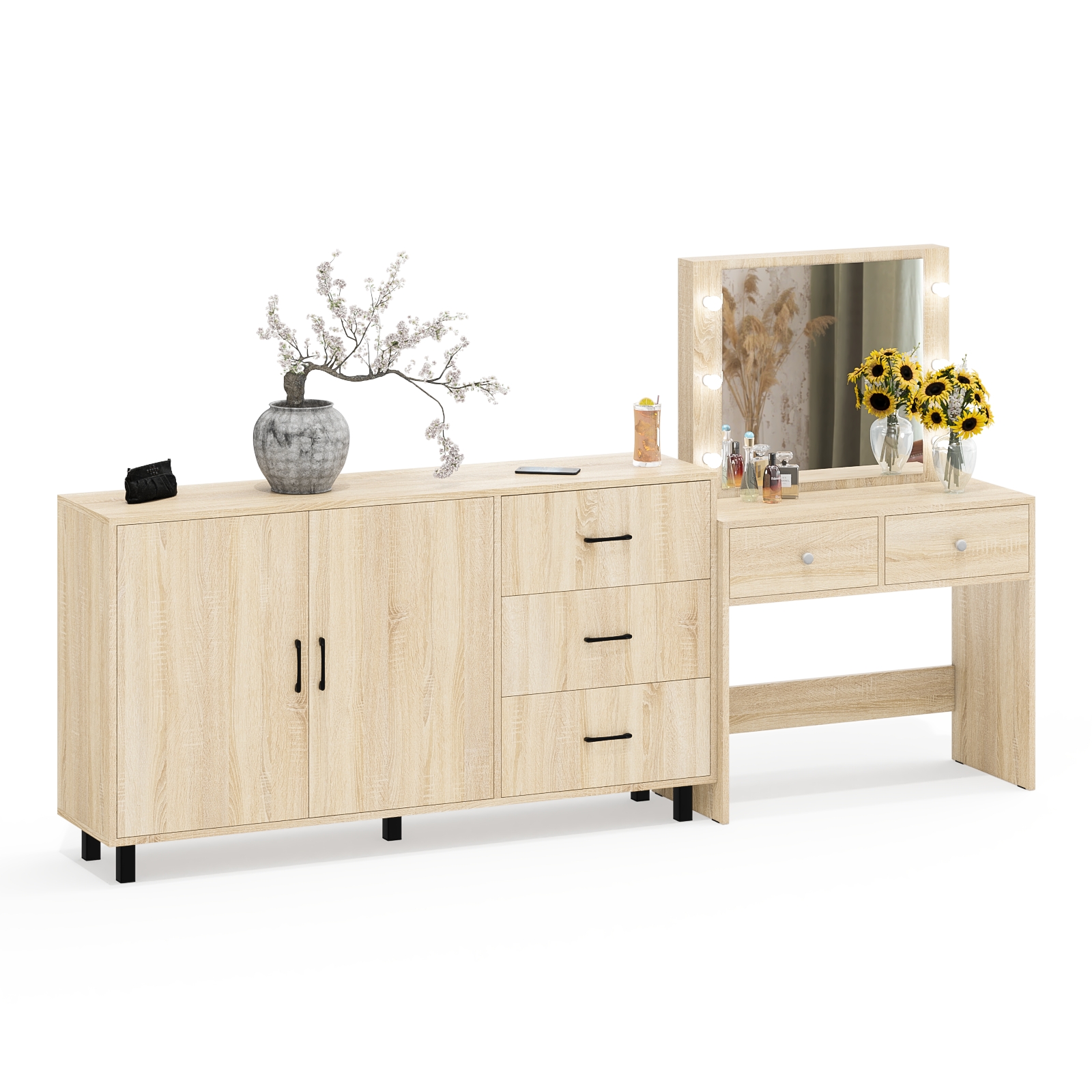 Косметический столик с подсветкой СТ-5 в комплекте с комодом 123-1604. Вместительный комод дополняет туалетный столик с зеркалом и подсветкой, создавая удобное пространство для хранения и ухода за собой.