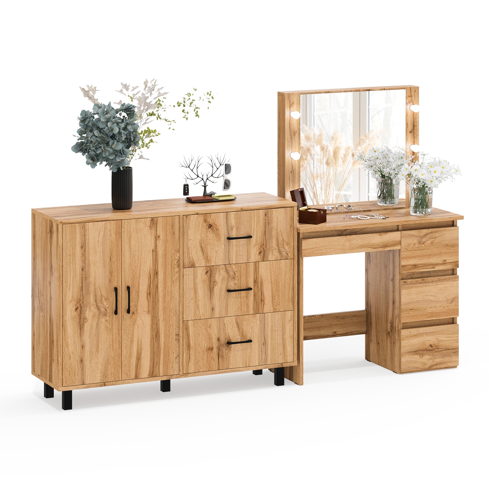 Комод-тумба 123-1204 и столик косметический с подсветкой и зеркалом Сура — стильный комплект для вашей спальни. Вместительный комод и удобный столик с зеркалом и подсветкой создают комфортное пространство для хранения и ухода за собой.