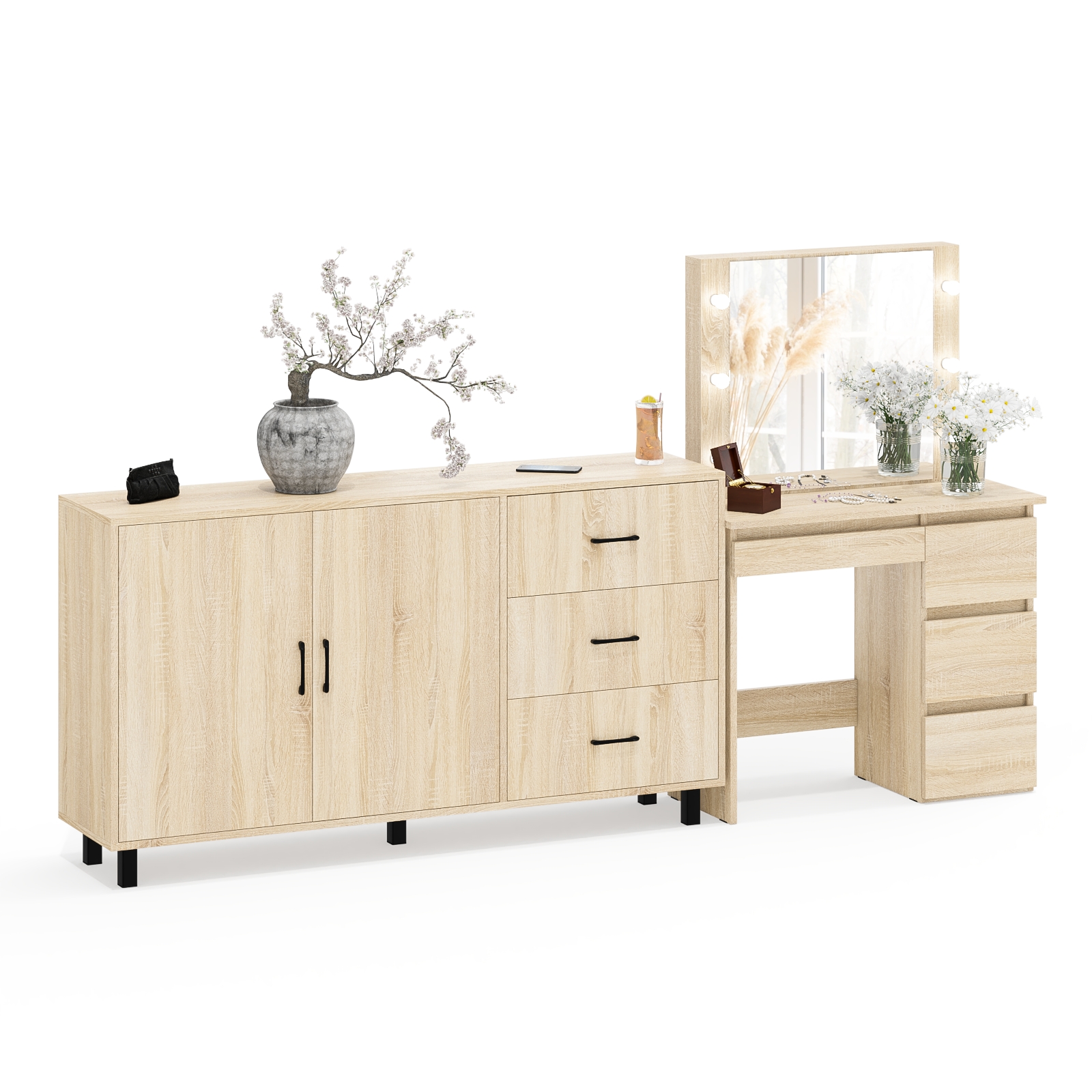 Отзывы о Столплит Косметический столик Сура с зеркалом и подсветкой и с тумбой-комодом 123-1604 Дуб сонома