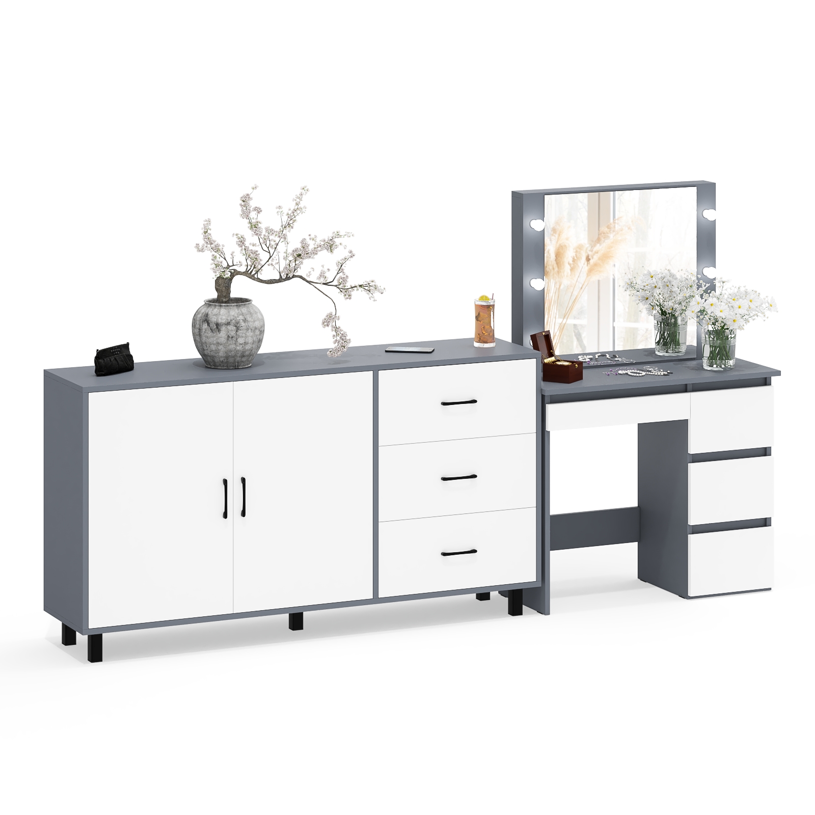 Отзывы о Столплит Косметический столик Сура с зеркалом и подсветкой и с тумбой-комодом 123-1604 Графит/Белый