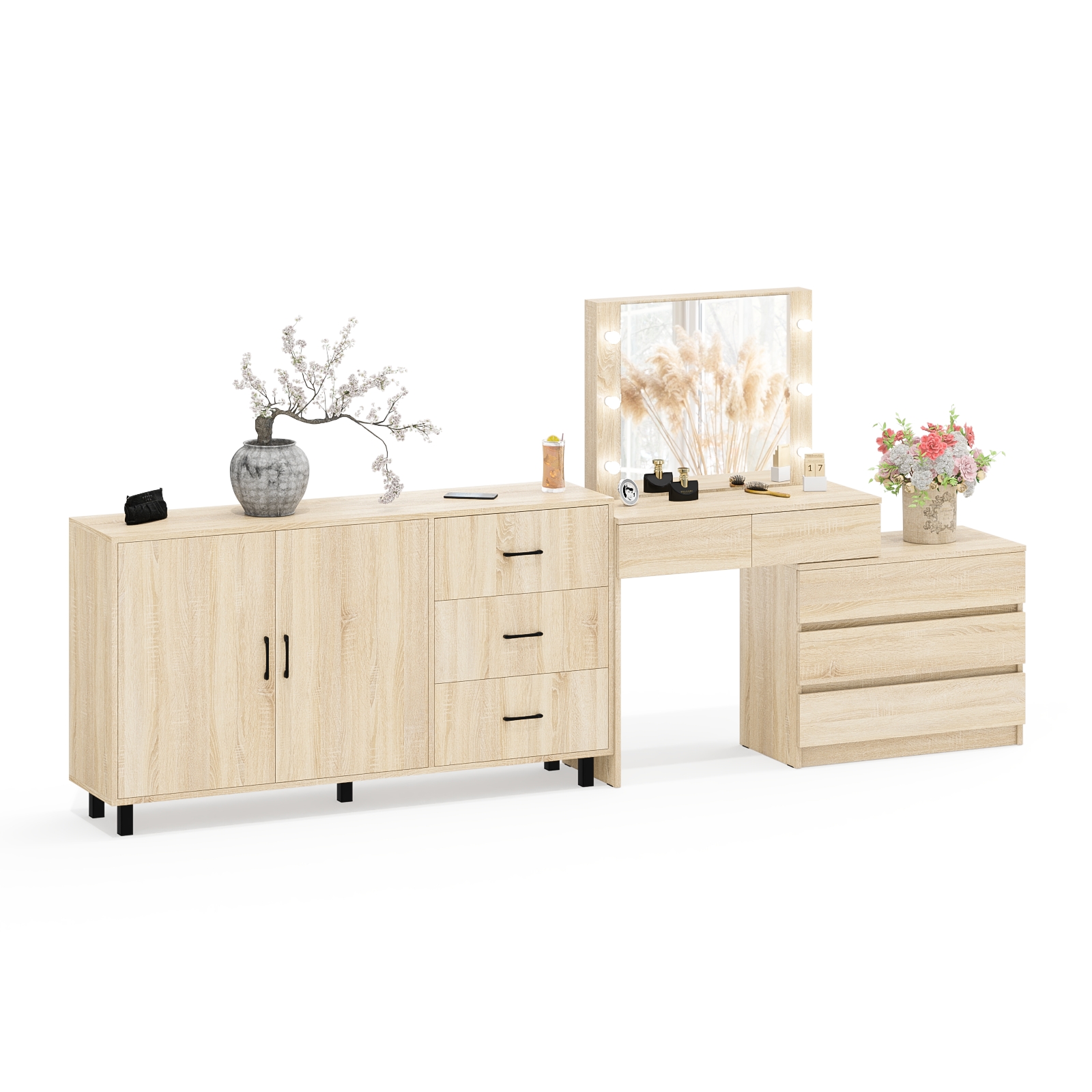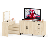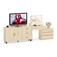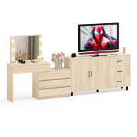Туалетный столик-трансформер с подсветкой и зеркалом 110 и комод-тумба 123-1604. Функциональное сочетание комода и столика с зеркалом и подсветкой создаёт удобное место для ухода за собой и хранения аксессуаров.