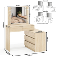 туалетного столика - прямого 142х40х142,5 см, углового - 111х80,4х142,5 см,