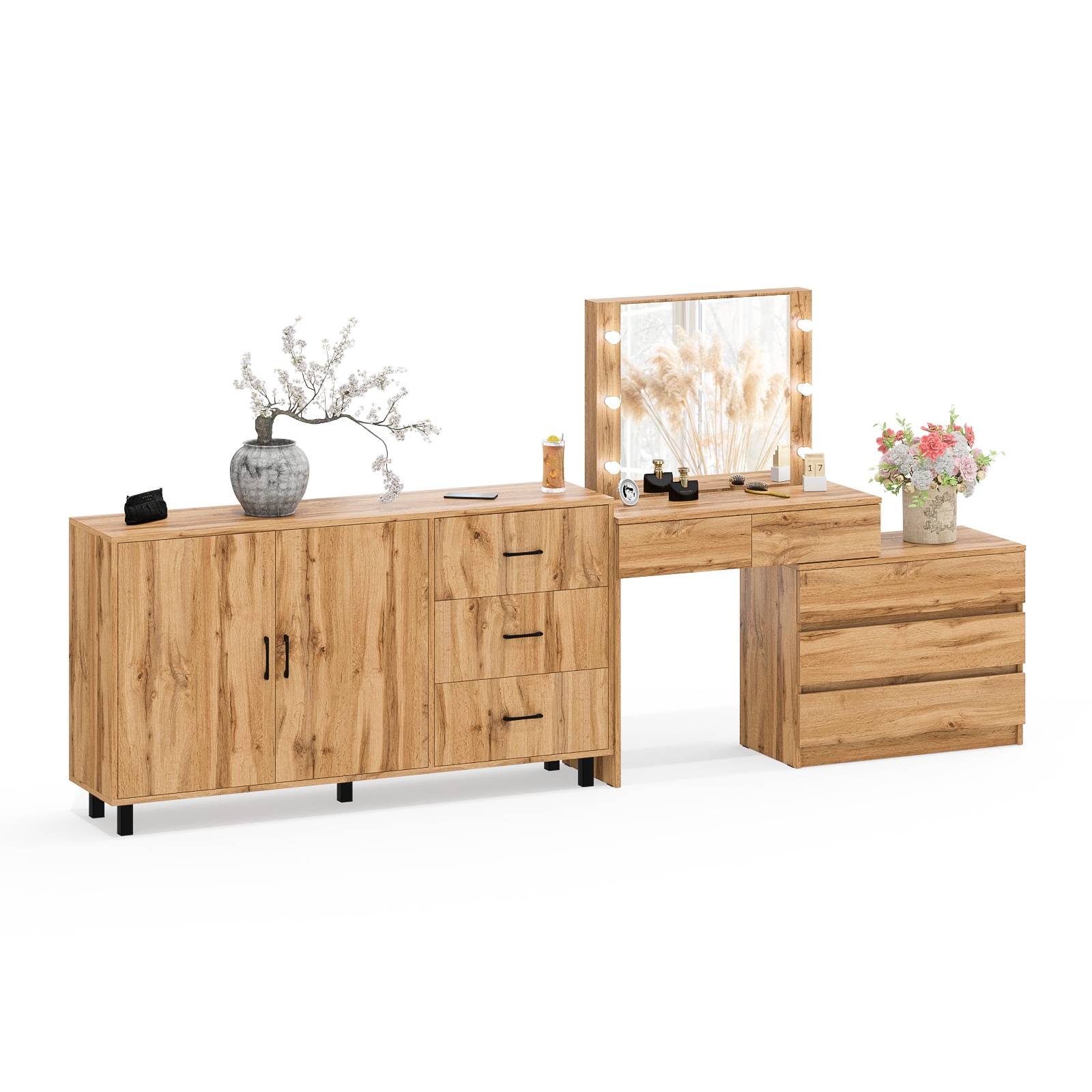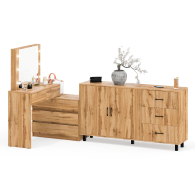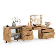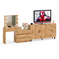 Туалетный столик-трансформер с подсветкой и зеркалом 110 и комод-тумба 123-1604. Функциональное сочетание комода и столика с зеркалом и подсветкой создаёт удобное место для ухода за собой и хранения аксессуаров.