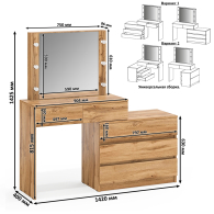 туалетного столика - прямого 142х40х142,5 см, углового - 111х80,4х142,5 см,