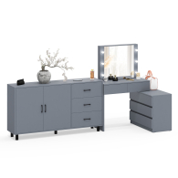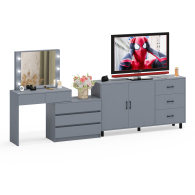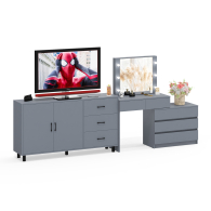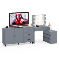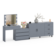 Туалетный столик-трансформер с подсветкой и зеркалом 110 и комод-тумба 123-1604. Функциональное сочетание комода и столика с зеркалом и подсветкой создаёт удобное место для ухода за собой и хранения аксессуаров.