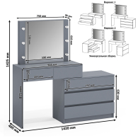 туалетного столика - прямого 142х40х142,5 см, углового - 111х80,4х142,5 см,