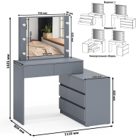 Отзывы о Столплит Туалетный столик-трансформер с подсветкой и зеркалом 110 и комод-тумба 123-1604 Графит