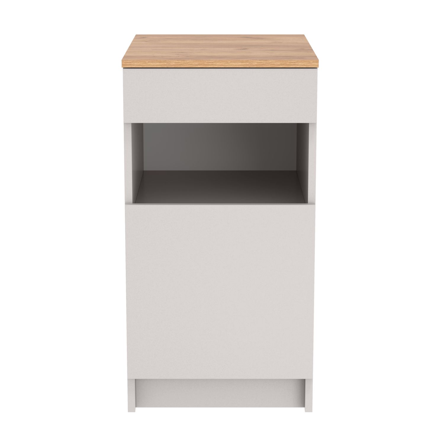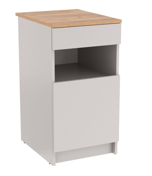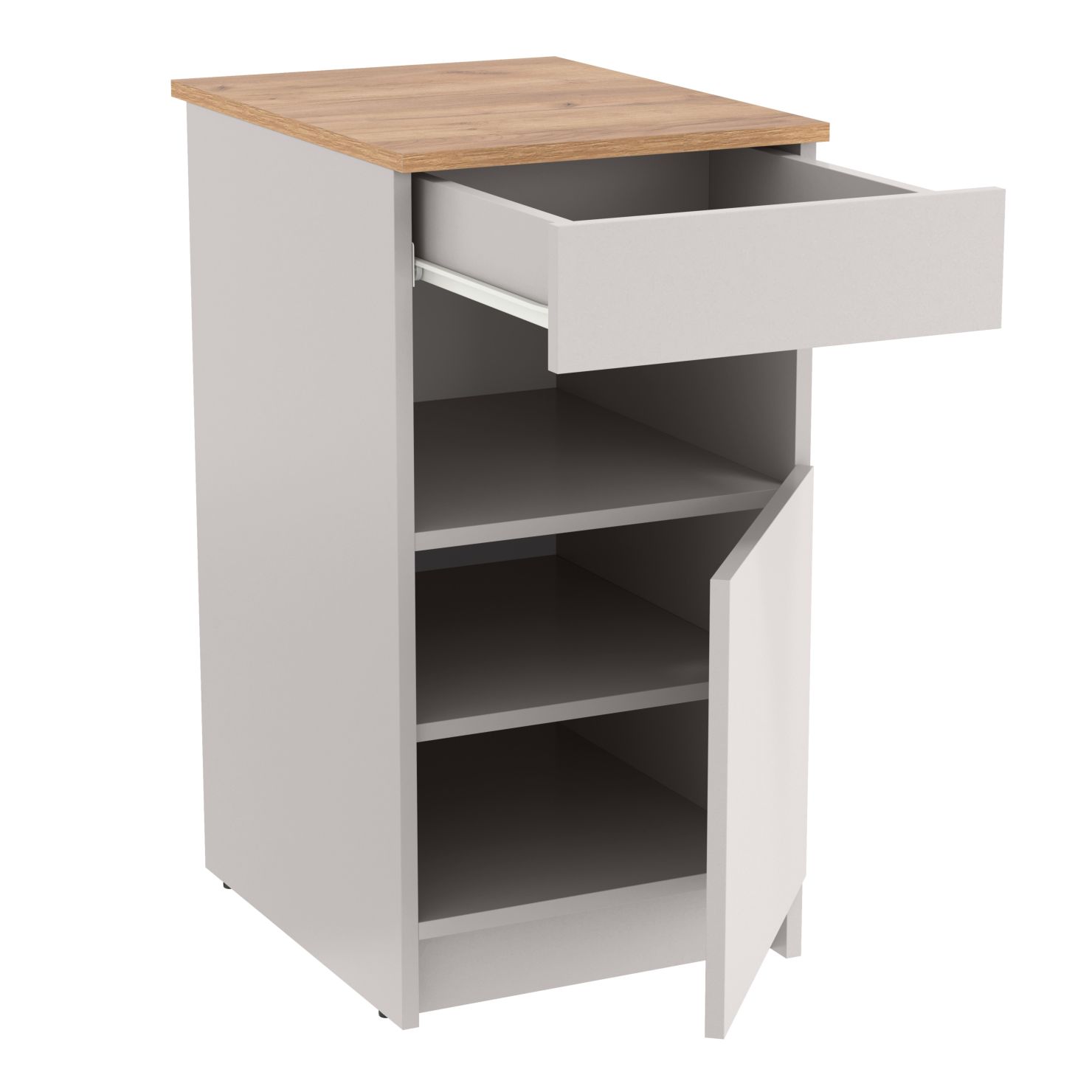 включает в себя выдвижной ящик и полки за распашной дверкой.