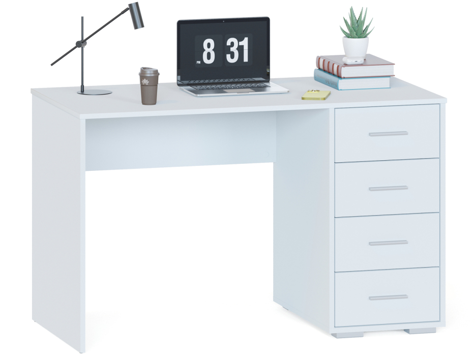 Письменный стол СПМ-353 с тумбой - функциональный вариант для меблировки офисного пространства, для домашнего кабинета, а также рабочего места школьника. Изделие имеет тумбу с вместительными выдвижными ящиками с шариковыми направляющими полного движения. Четыре ящика позволяют организовать функциональную систему хранения на рабочем месте. Ширина модели позволит организовать полноценное рабочее место и размеcтить под рукой всё необходимое. Изделие смотрится эффектно благодаря классическому стилю, который подчеркивает рабочую атмосферу. Лаконичный дизайн модели позволяет вписать стол в любой интерьер офиса и дома.