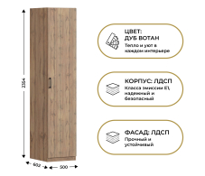 Шкаф однодверный Макс 500 мм, вариант №1 (ЛДСП, дуб вотан) (Дуб Вотан) Код 00000337159