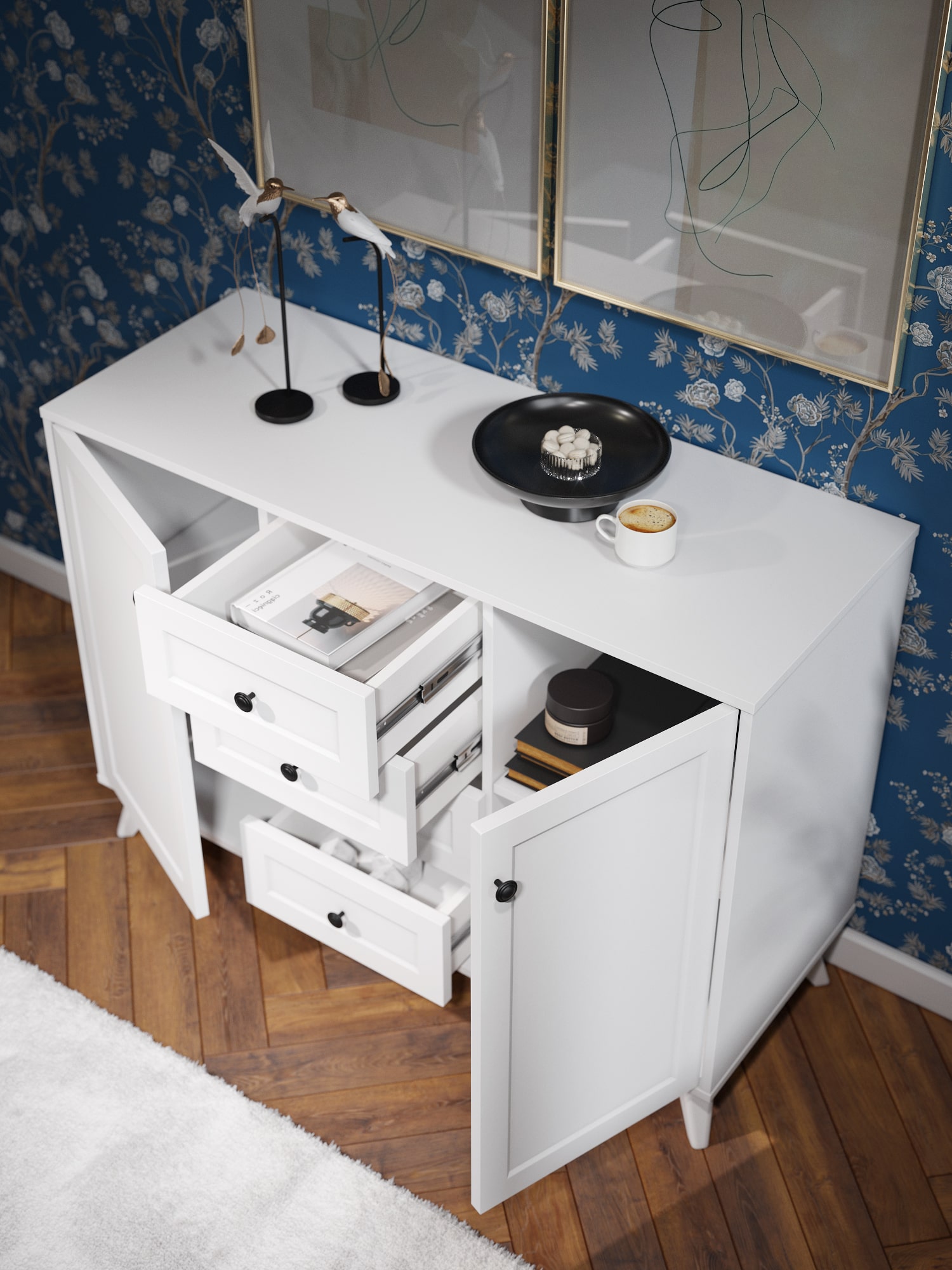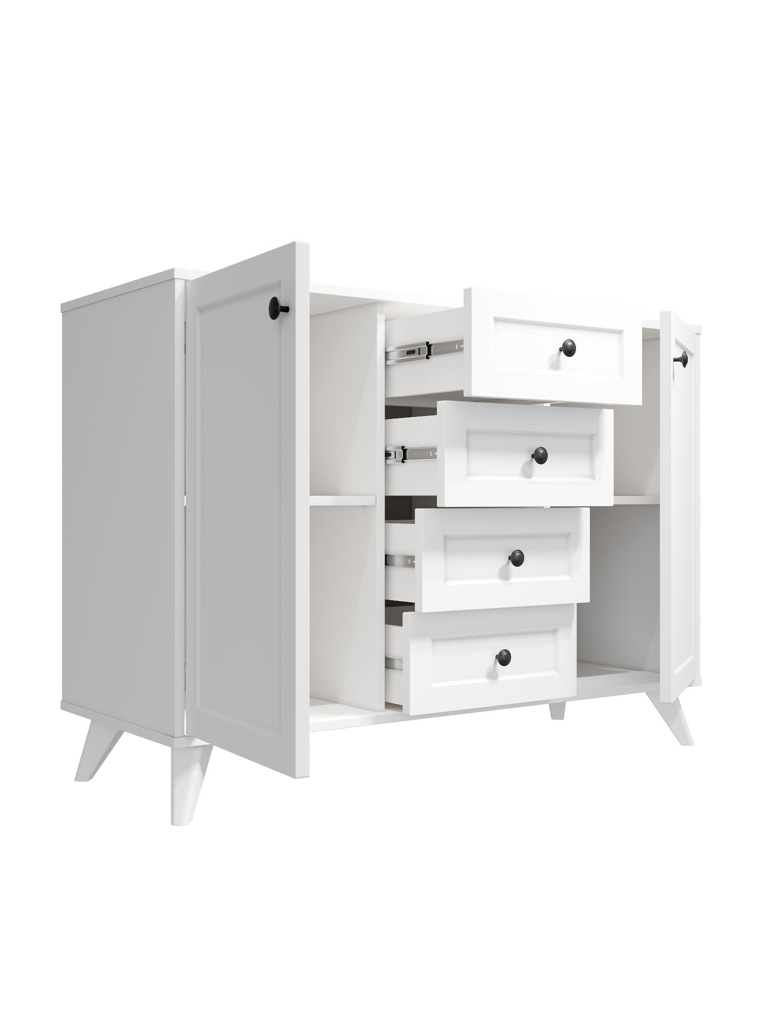 4 выдвижных ящика на телескопических направляющих полного выдвижения
