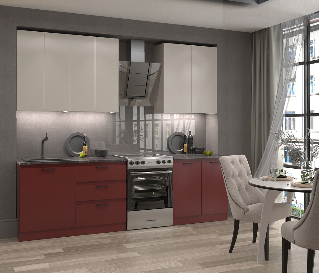 Отзывы о Столплит Кухня прямая Ревилья 02 Красно-коричневый / Кашемир серый