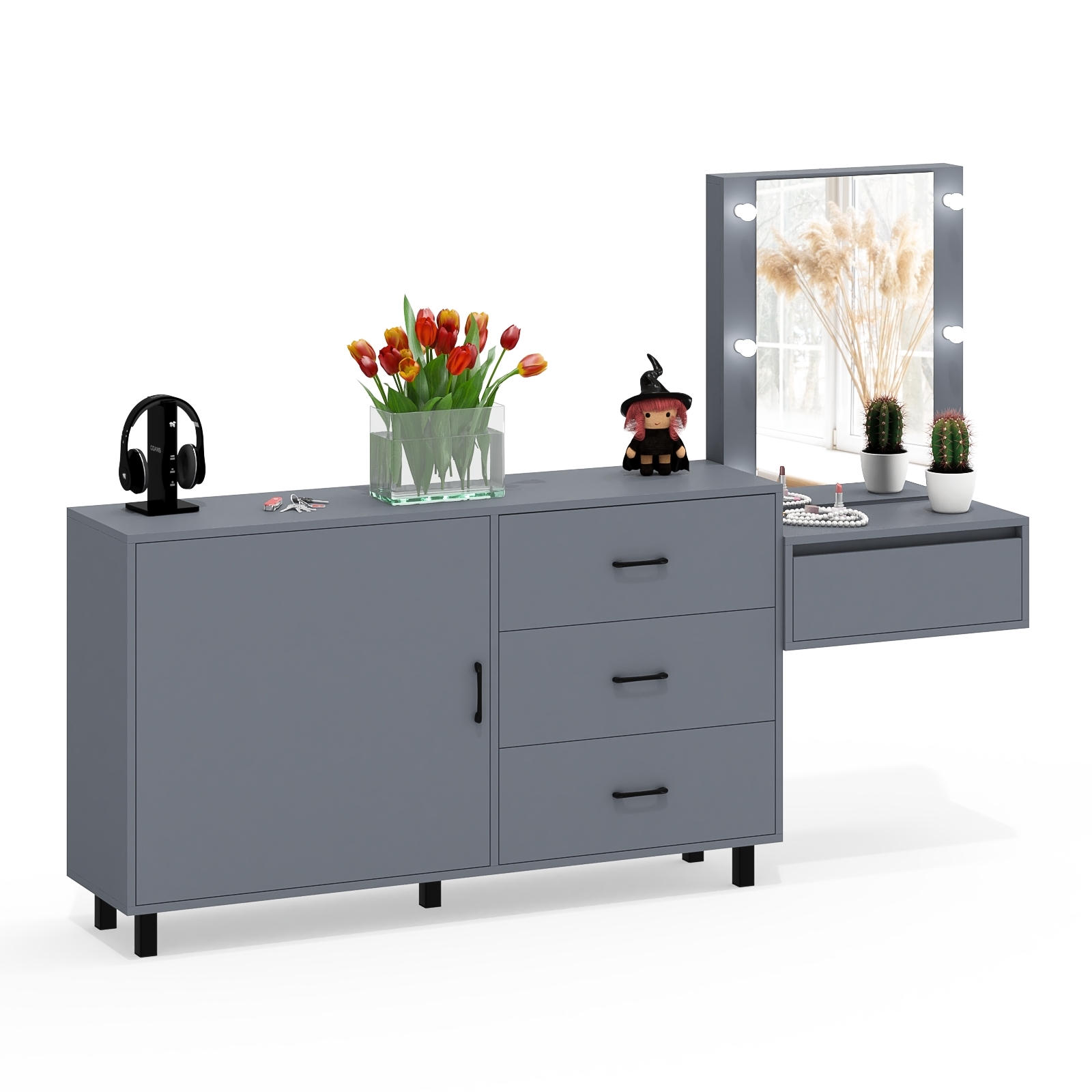 Стол косметический навесной с подсветкой и комод 122-1504 — современный комплект мебели для спальни.