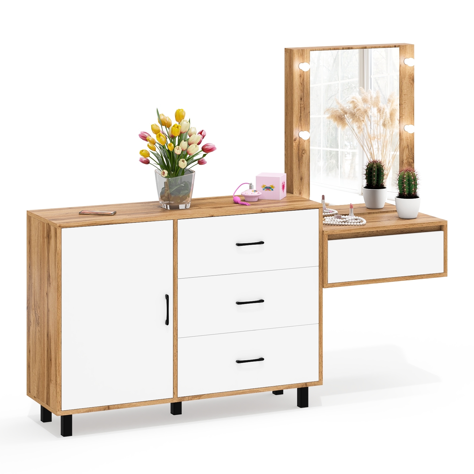 Отзывы о Столплит Комод с дверками и ящиками 122-1204 и косметический столик навесной с подсветкой Белый/Дуб вотан