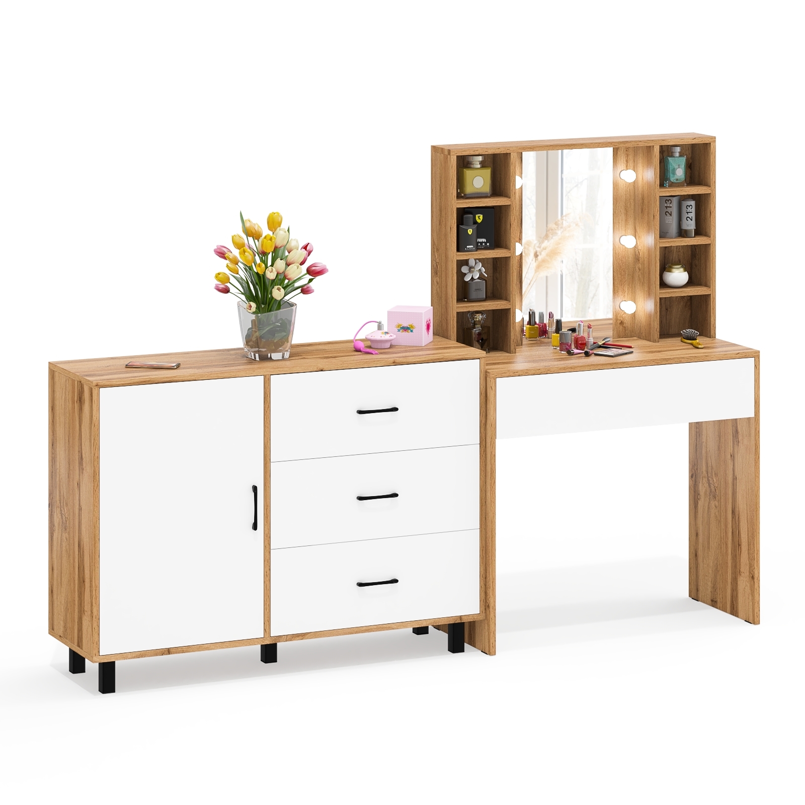Туалетный столик с подсветкой 115 и комод с дверкой и 3-мя ящиками 122-1204 (Белый/Дуб вотан) Код I0000448991