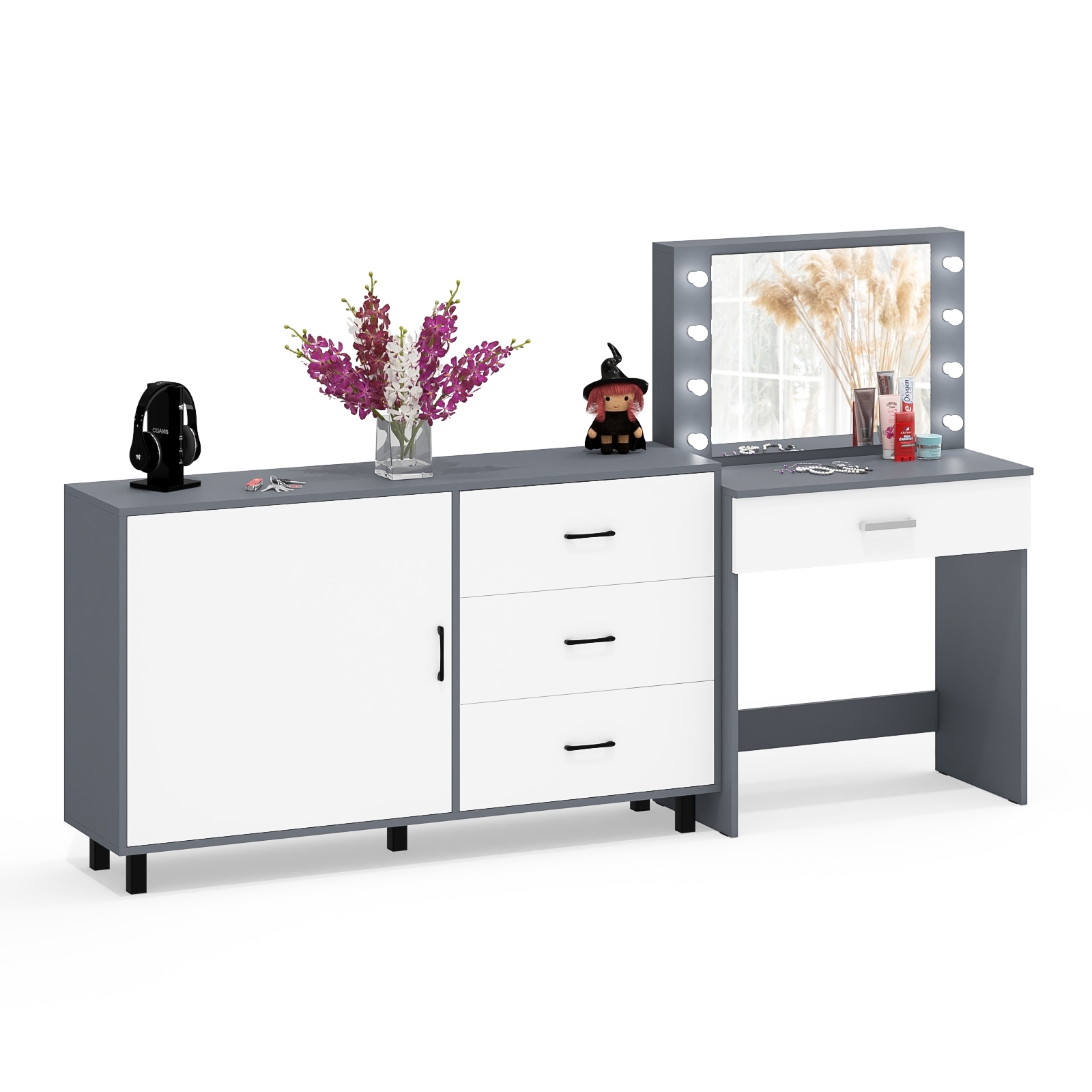 Отзывы о Столплит Комод ящики и дверка 122-1504 и туалетный столик с подсветкой СТ-4 Графит/Белый