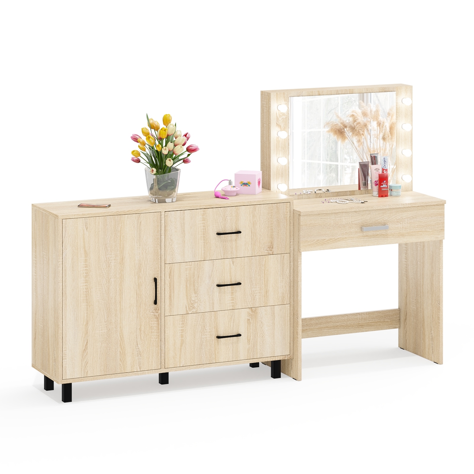 Косметический стол с подсветкой и выдвижным ящиком СТ-4 и комод 122-1204 — практичный комплект мебели, идеально подходящий для спальни. Подсветка и просторные ящики обеспечивают комфорт и порядок.