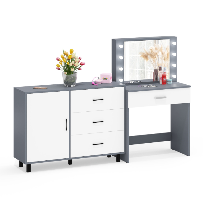 Отзывы о Столплит Косметический стол с подсветкой и выдвижным ящиком СТ-4 и комод 122-1204 Графит/Белый