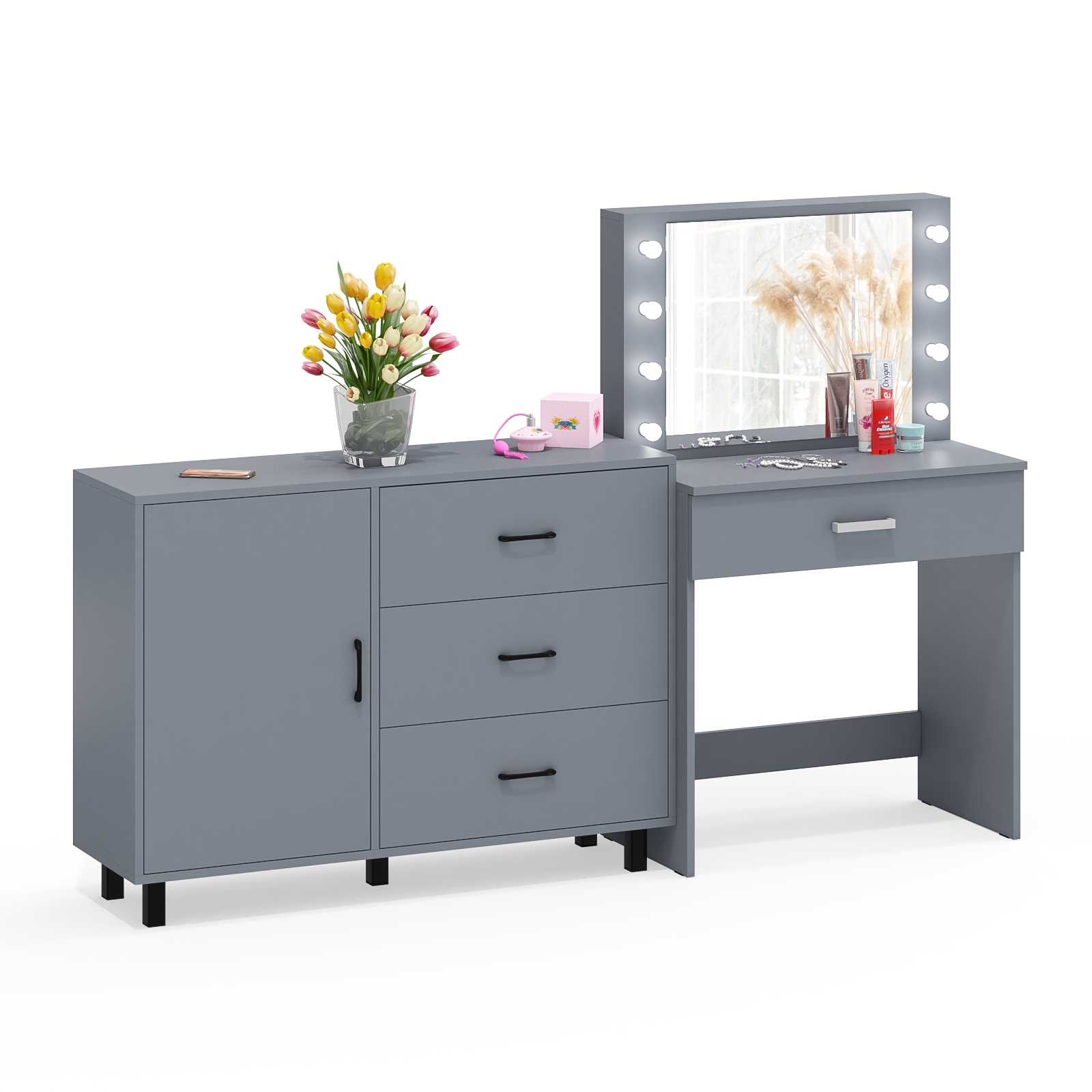 Косметический стол с подсветкой и выдвижным ящиком СТ-4 и комод 122-1204 — практичный комплект мебели, идеально подходящий для спальни. Подсветка и просторные ящики обеспечивают комфорт и порядок.