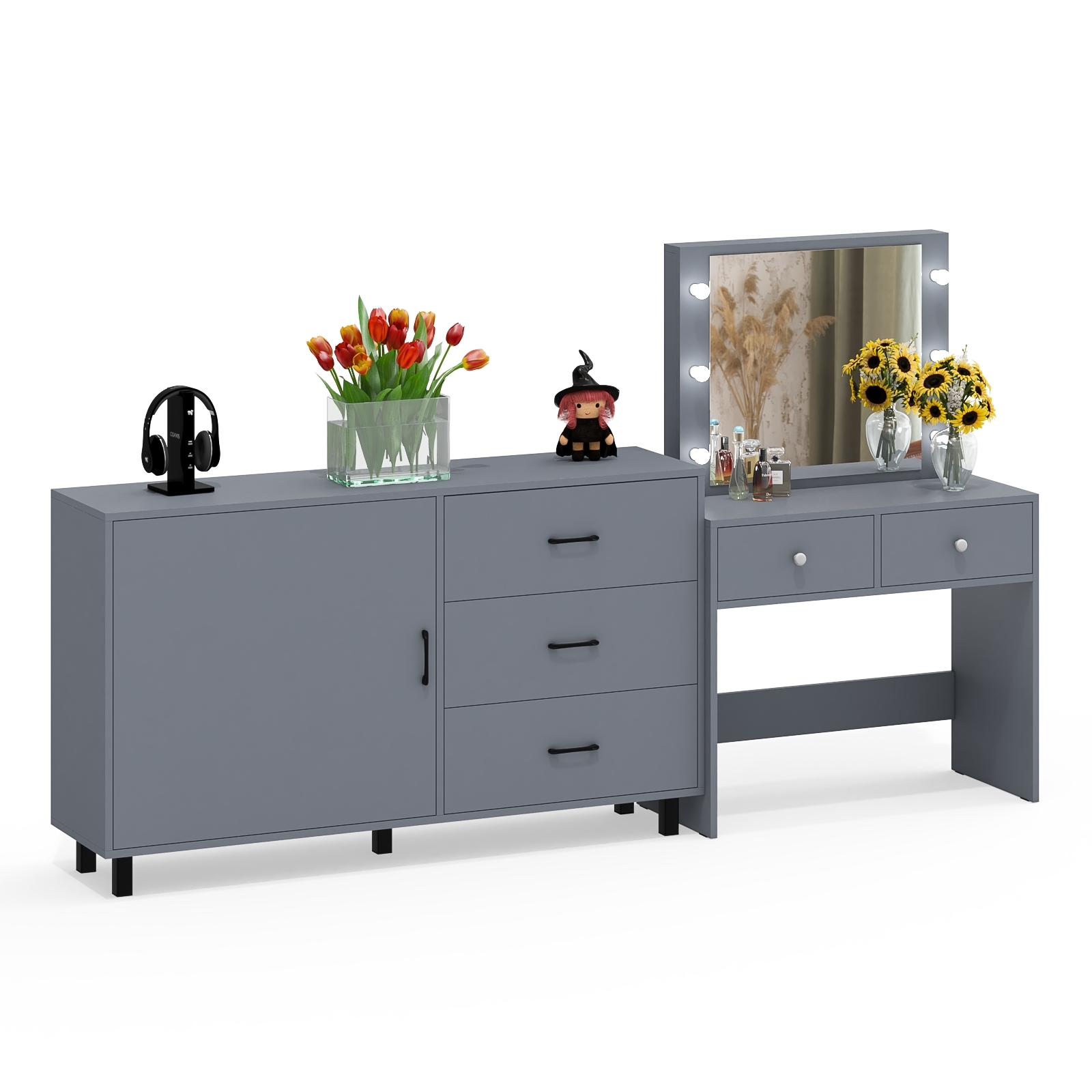 Косметический столик с лампочками СТ-5 и комод-тумба 122-1504 — гармоничный комплект, сочетающий практичность и изысканный дизайн. Отлично подойдёт для современных интерьеров.
