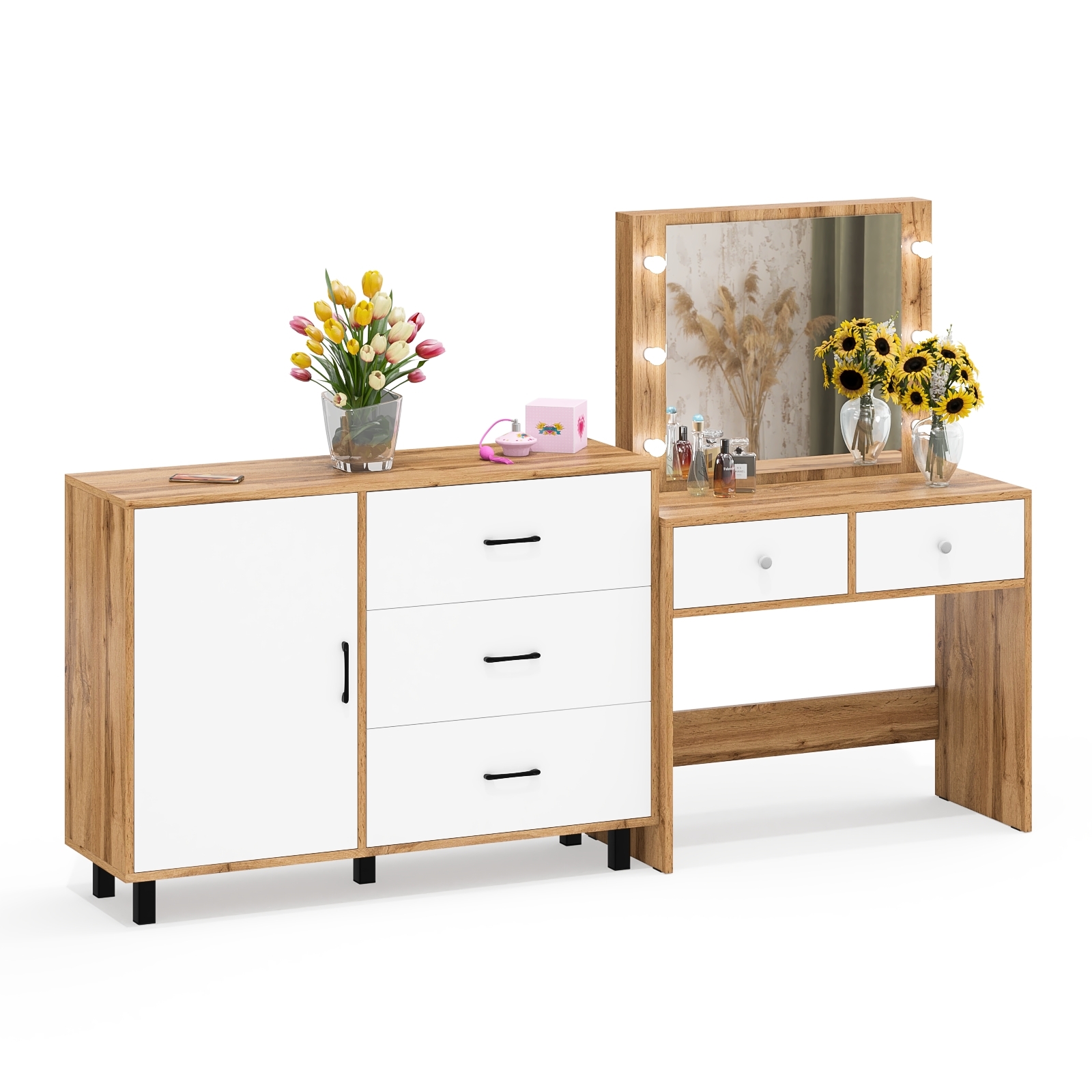 Отзывы о Столплит Стол туалетный для спальни с лампочками СТ-5 и тумба-комод 122-1204 Белый/Дуб вотан