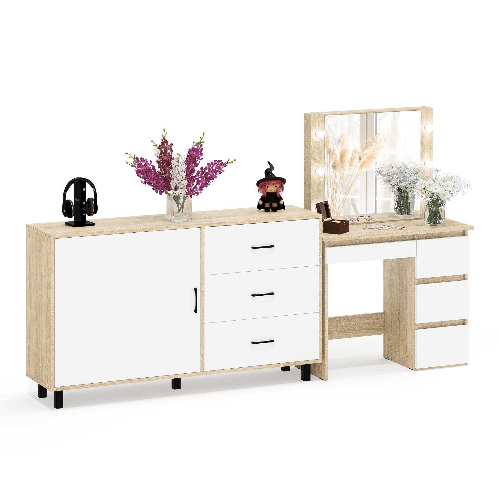 Отзывы о Столплит Столик косметический с подсветкой Сура и тумба-комод 122-1504 Дуб Сонома, Белый