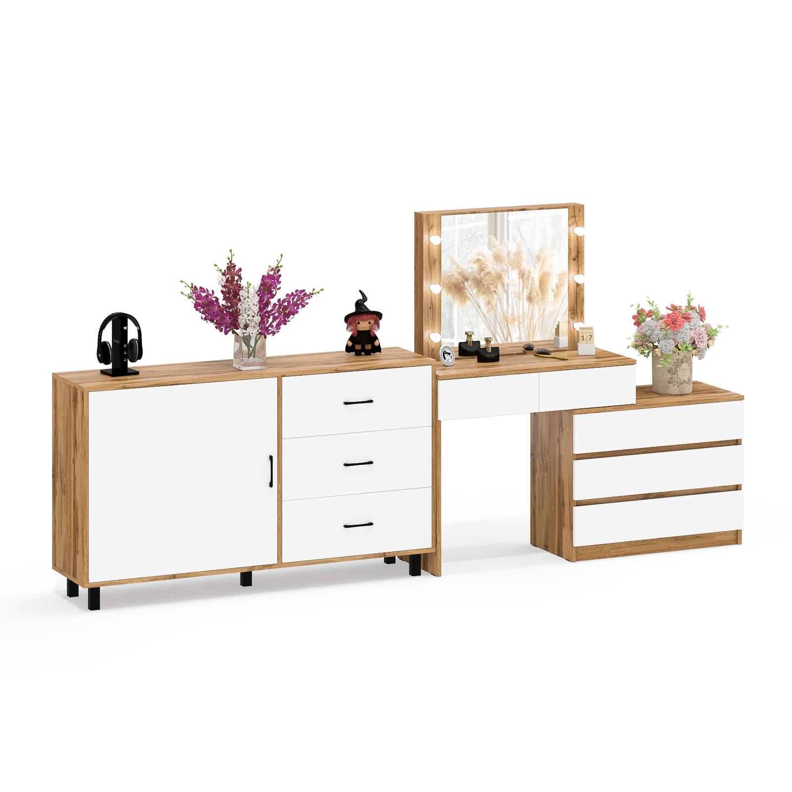 Отзывы о Столплит Стол-трансформер косметический с подсветкой 110 и комод-тумба три ящика 122-1504 Белый/Дуб вотан