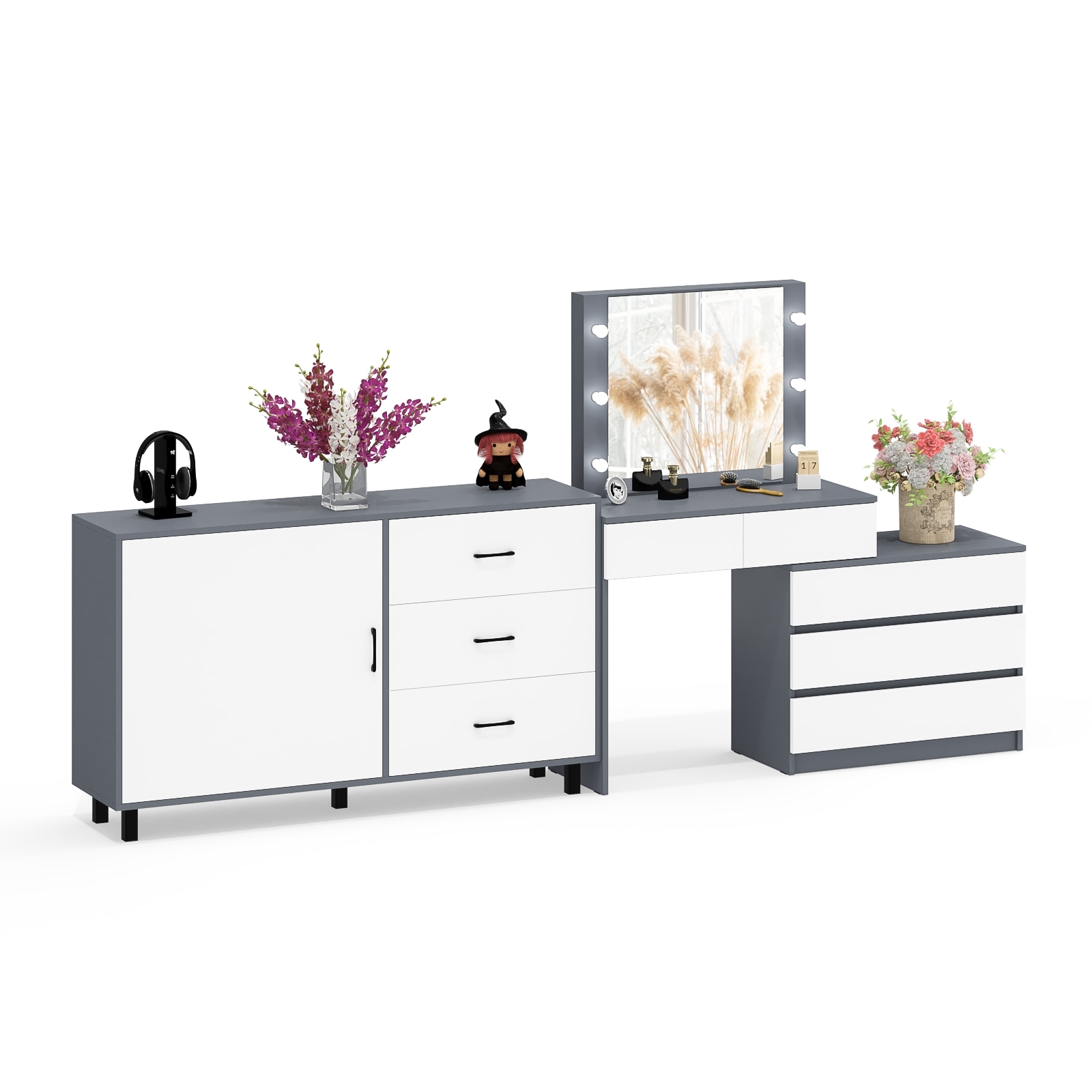 Отзывы о Столплит Стол-трансформер косметический с подсветкой 110 и комод-тумба три ящика 122-1504 Графит/Белый