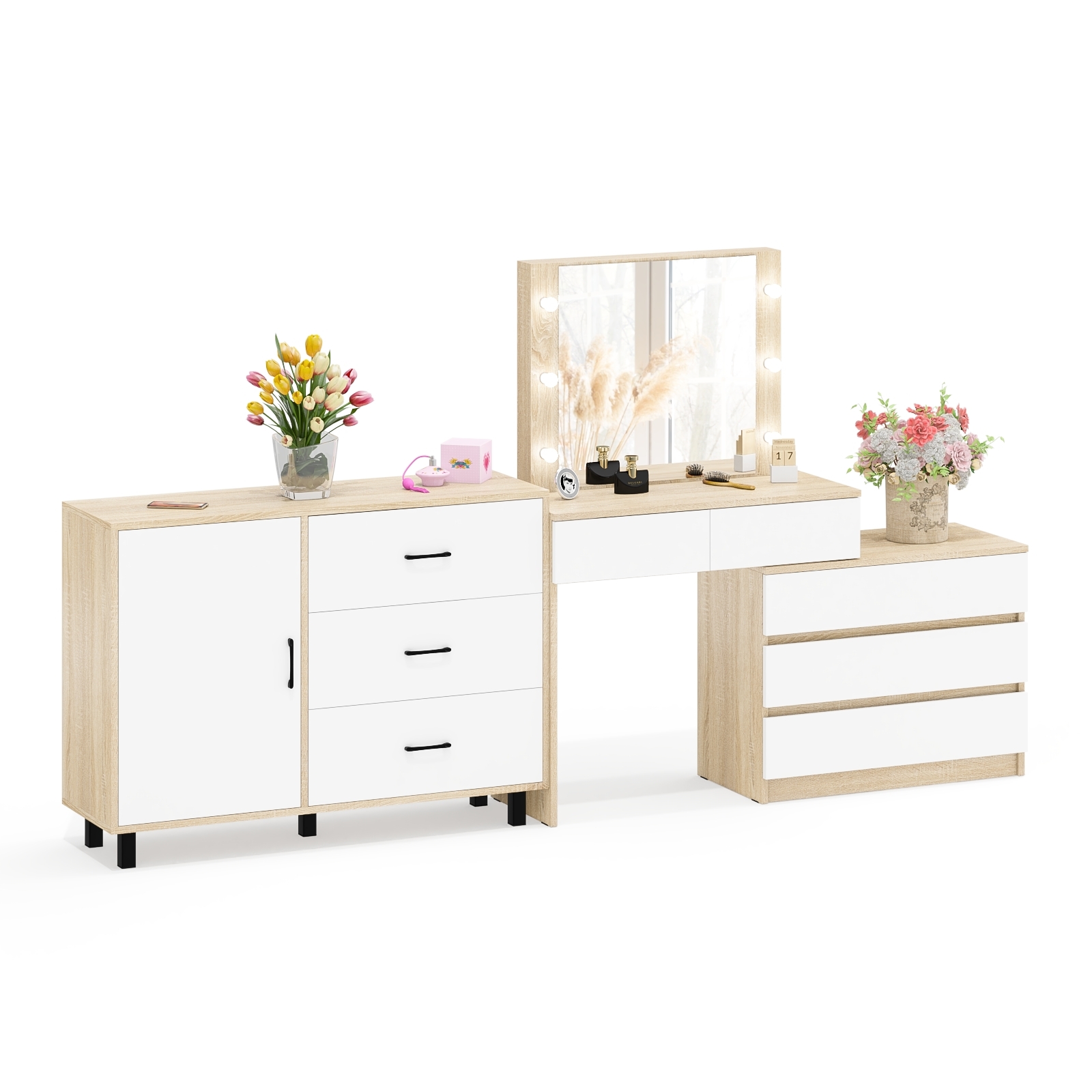 Отзывы о Столплит Угловой туалетный столик с подсветкой 110 и тумба-комод дверка и 3 ящика 122-1204 Дуб Сонома, Белый