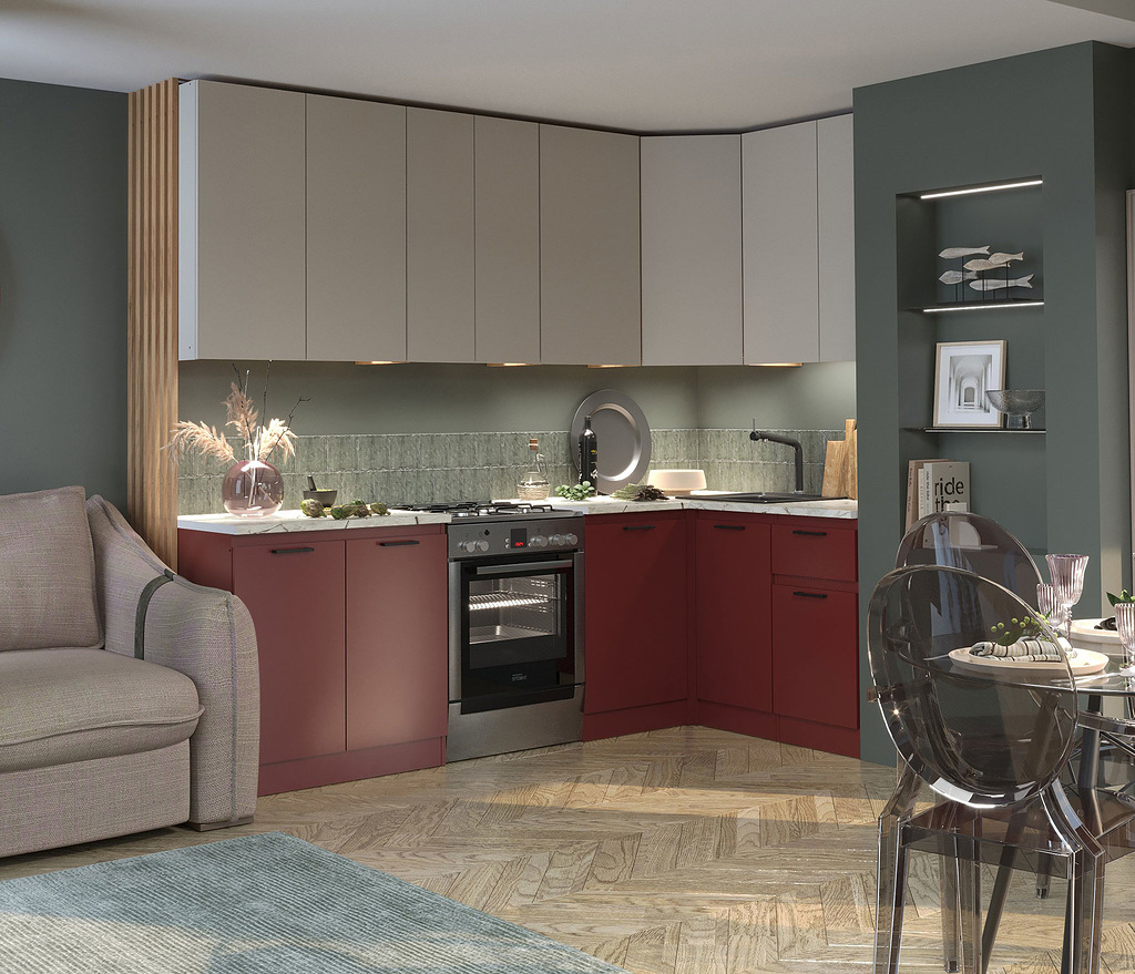 Кухня угловая Ревилья 03 (Красно-коричневый / Кашемир) Код I0000447486