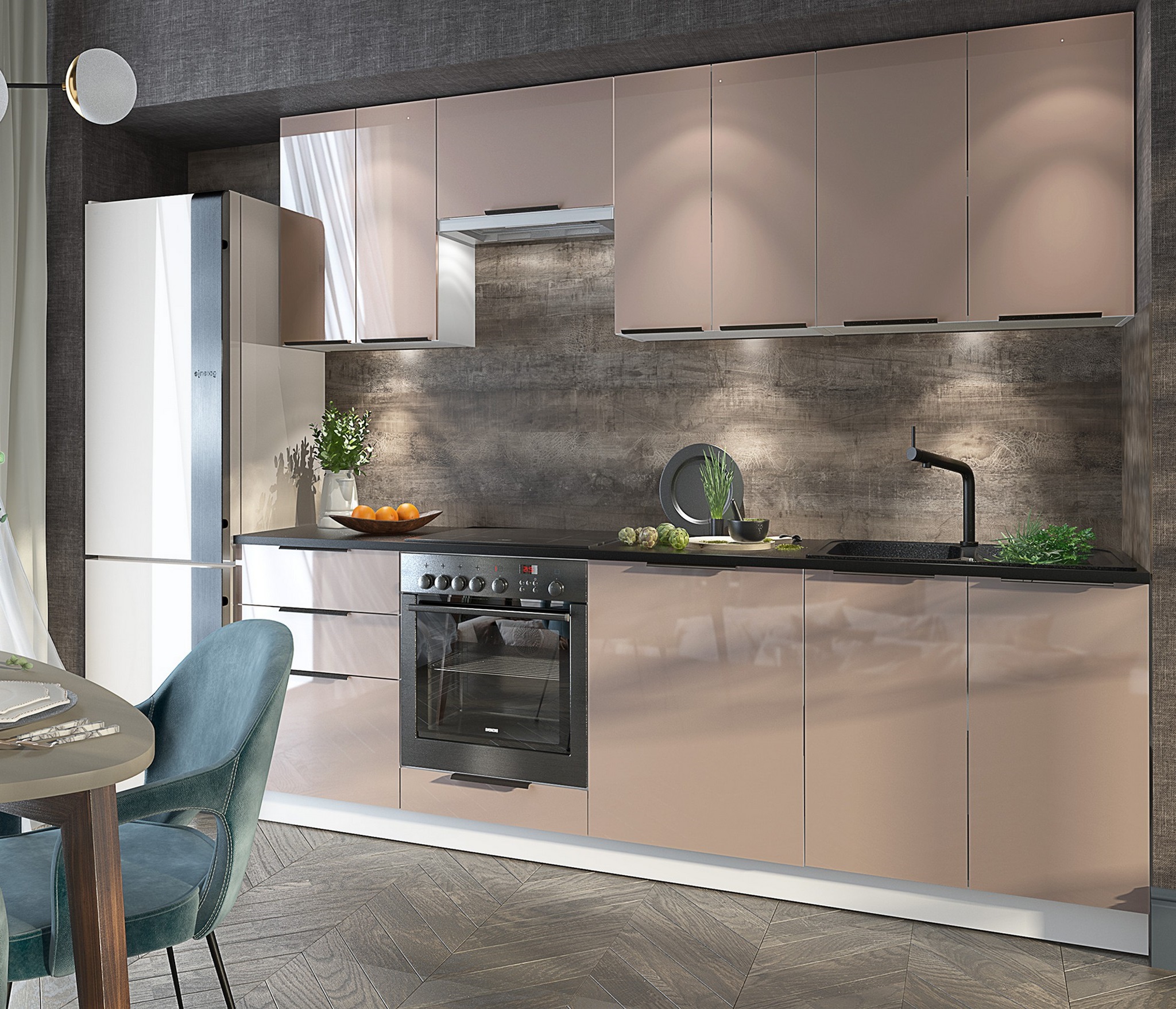 Кухонный гарнитур Калипсо 2,6 м (Капучино глянец)