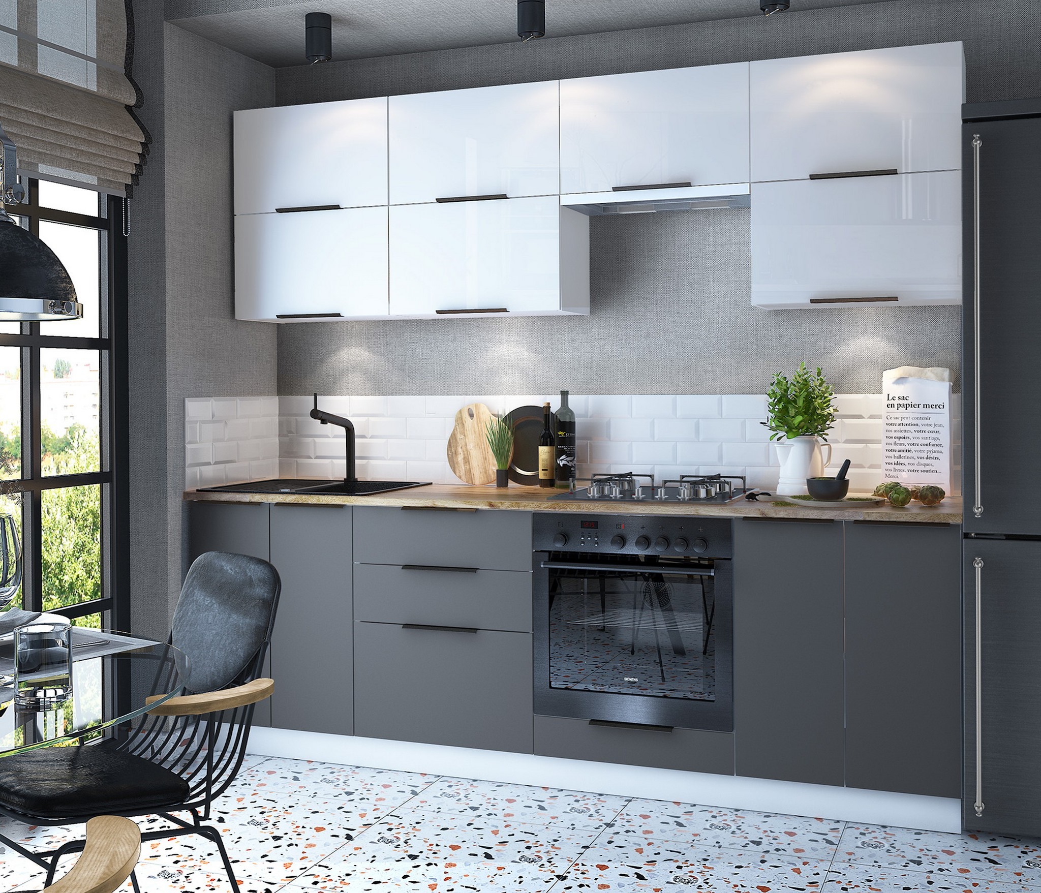 Кухонный гарнитур Калипсо 2,4 м (Графит/Белый)