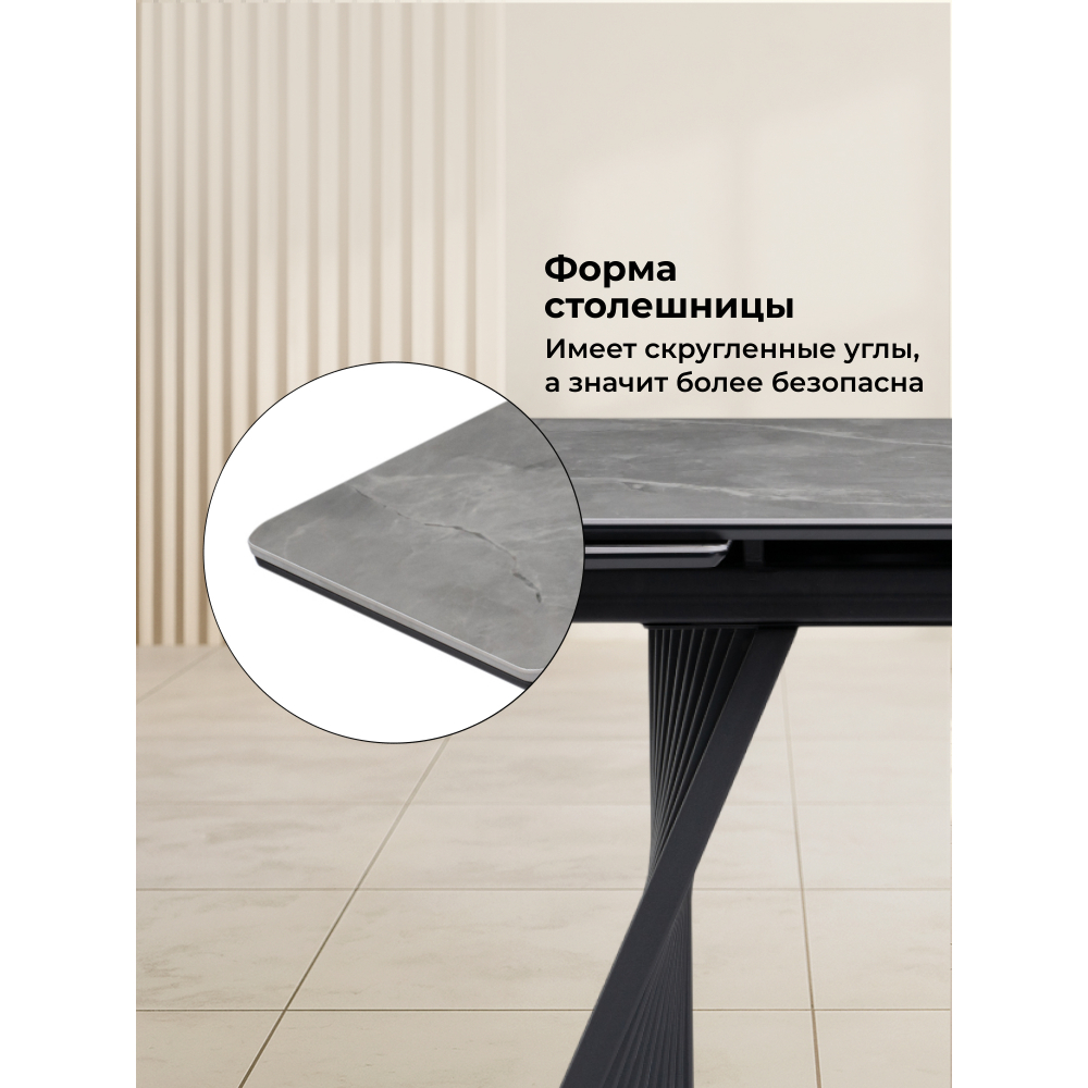 Основа столешницы из МДФ - 16мм, сверху керамическое полотно - 6мм. Порошковое окрашивание - дополнительная защита от царапин. Массивные ножки толщиной 3мм. Устойчивая и надёжная конструкция