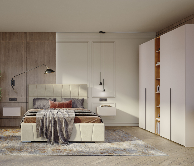Спальня “Лаура” создана из экологически безопасного ЛДСП класса Е1, что обеспечивает безопасность для вашего здоровья. Текстура “Кашемир серый” в сочетании с “Дубом барокко” создает уютный и стильный интерьер. Четырехшарнирные петли гарантируют плавное и бесшумное закрывание дверей, а антрацитовые ручки дополняют строгий дизайн спальни. Шариковые направляющие и система Push to Open обеспечивают удобное и бесшумное использование ящиков и дверей. В платяных шкафах можно установить штангу для одежды, внутренние полки или выдвижные ящики для максимального удобства хранения вещей. Эта спальня станет прекрасным выбором для ценителей комфорта, стиля и экологичности.