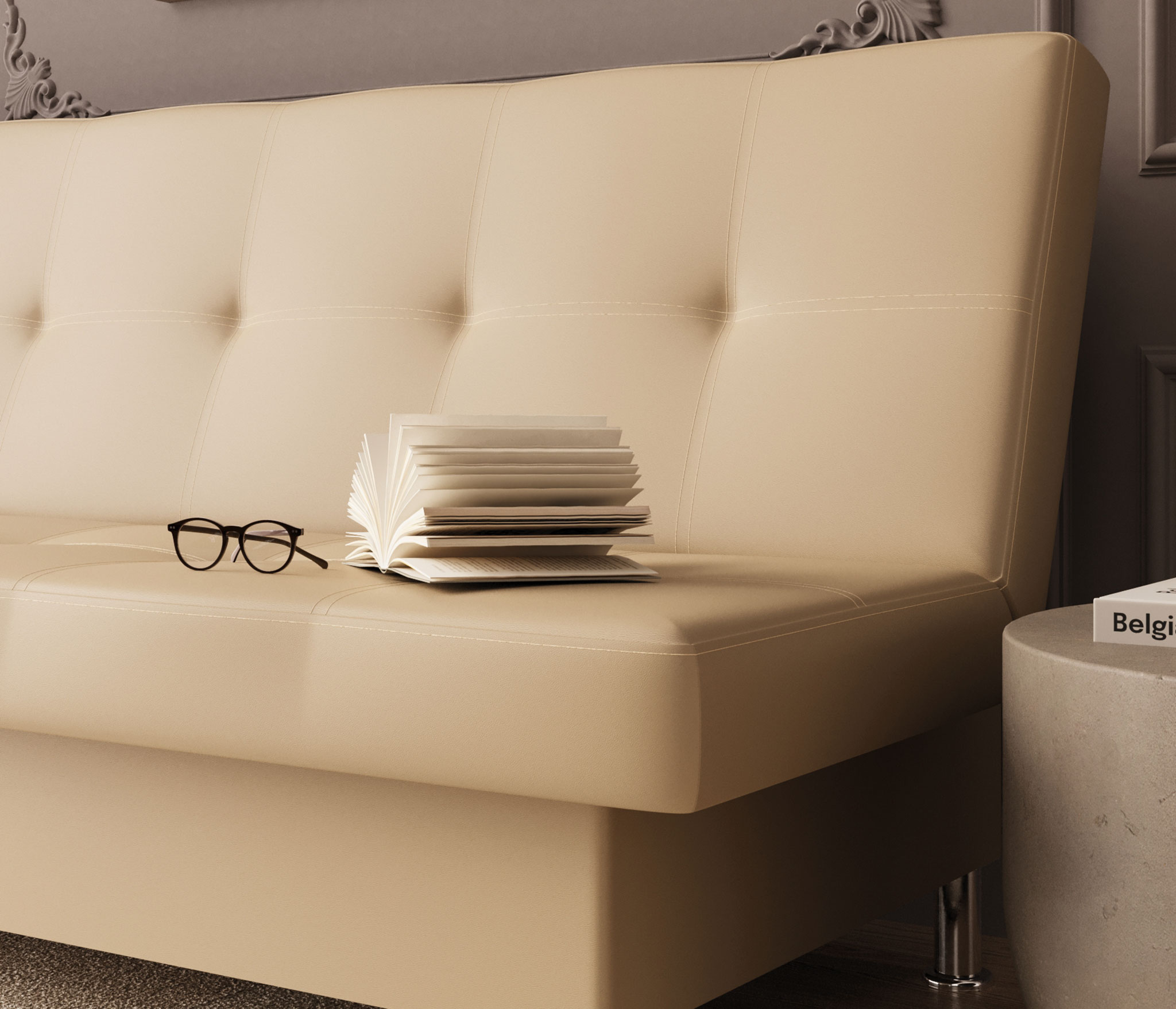 За счет того, что экокожа коллекции Boston обладает повышенной устойчивостью к истиранию, диван Бомонд подходит для повседневного использования, благодаря высокой износостойкости более 100 000 циклов по Мартиндейлу диван прослужит вам долгие годы.
