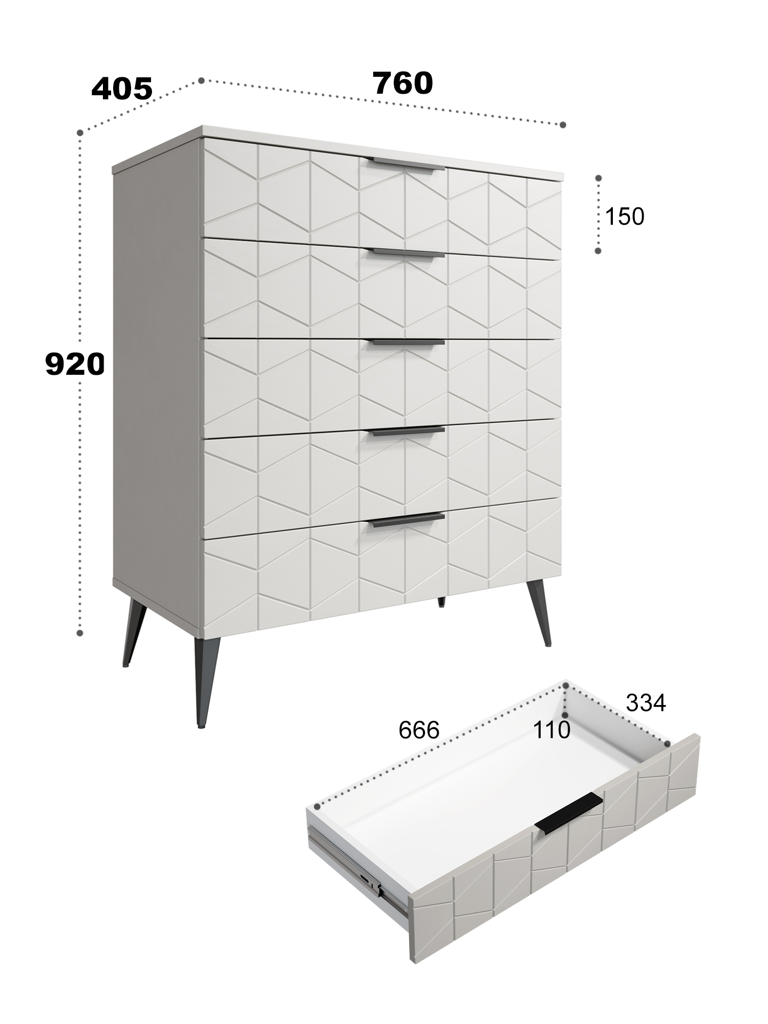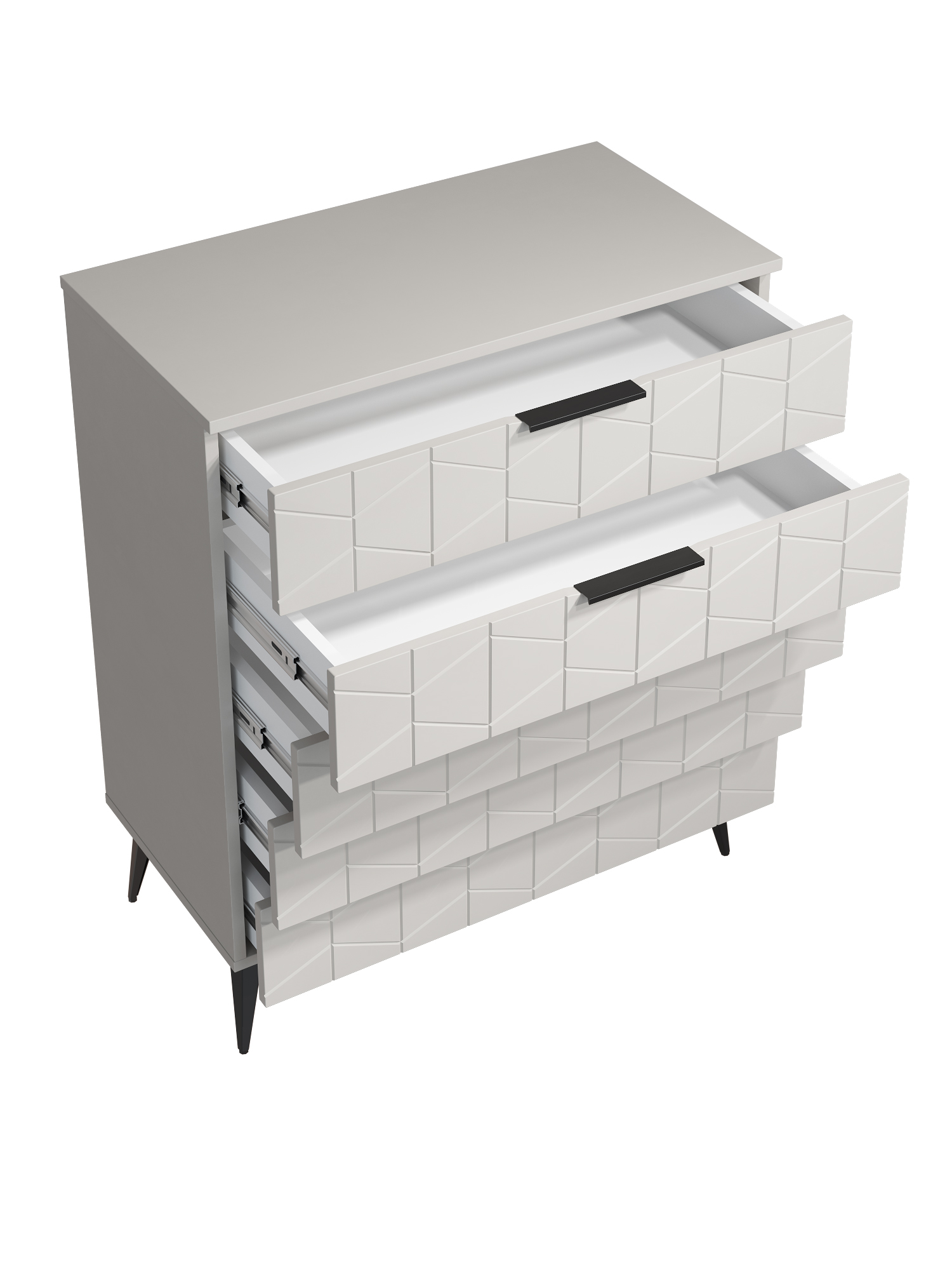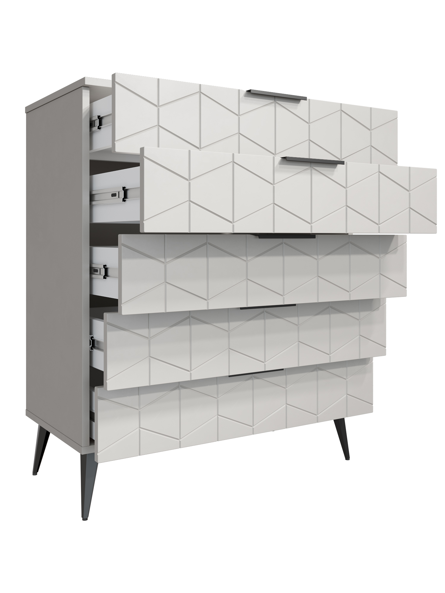 Пять выдвижных ящиков на телескопических направляющих